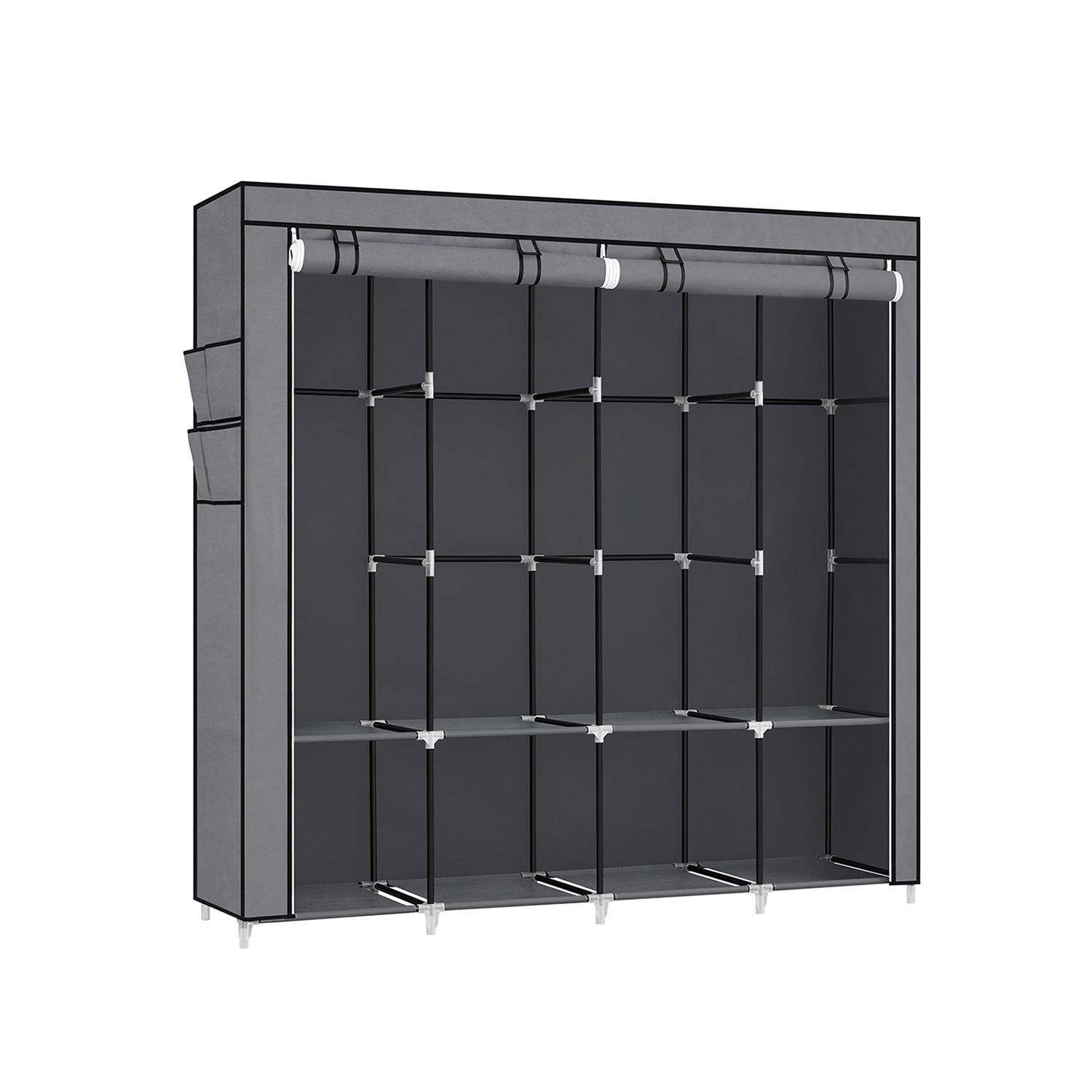 Clothes Wardrobe, Portable Closet, Garment Organiser Rack with 4 Hanging Rails, Shelves, 4 Side Pockets, 45 x 170 x 167 cm, Large Capacity for Bedroom, Living Room, Grey RYG094G02
