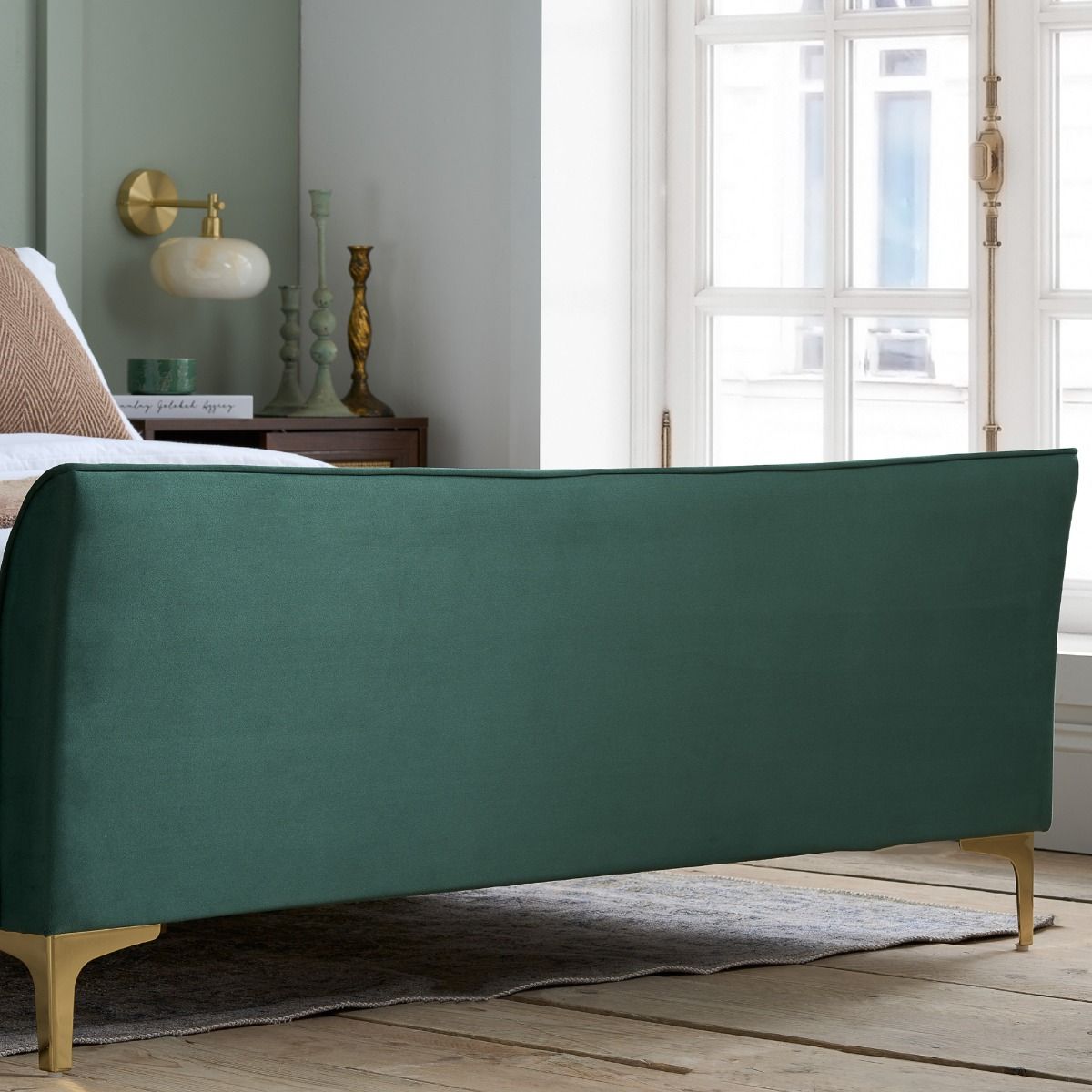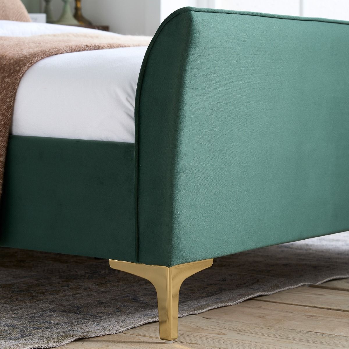 Clover Modern Design Green Velvet Gold Feets Bed - Small Double 4ft
