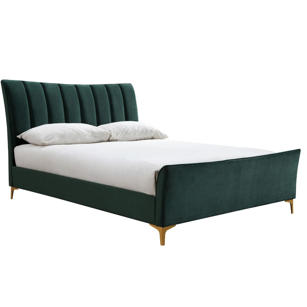 Clover Modern Design Green Velvet Gold Feets Bed - Standard Double 4ft6
