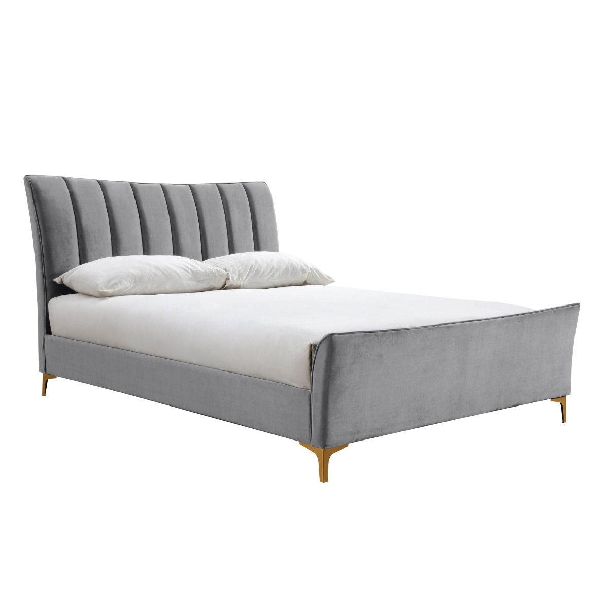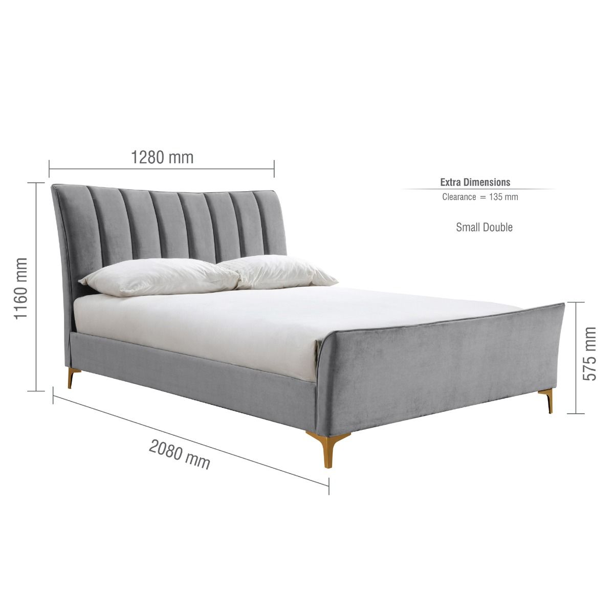 Clover Modern Design Grey Velvet Gold Feets Bed - Small Double 4ft
