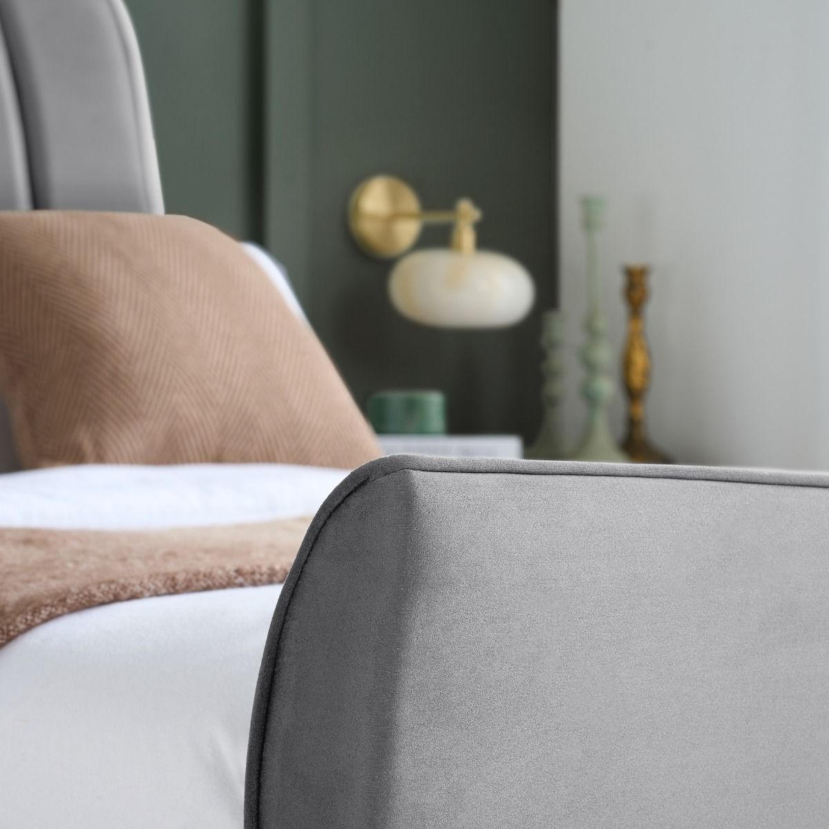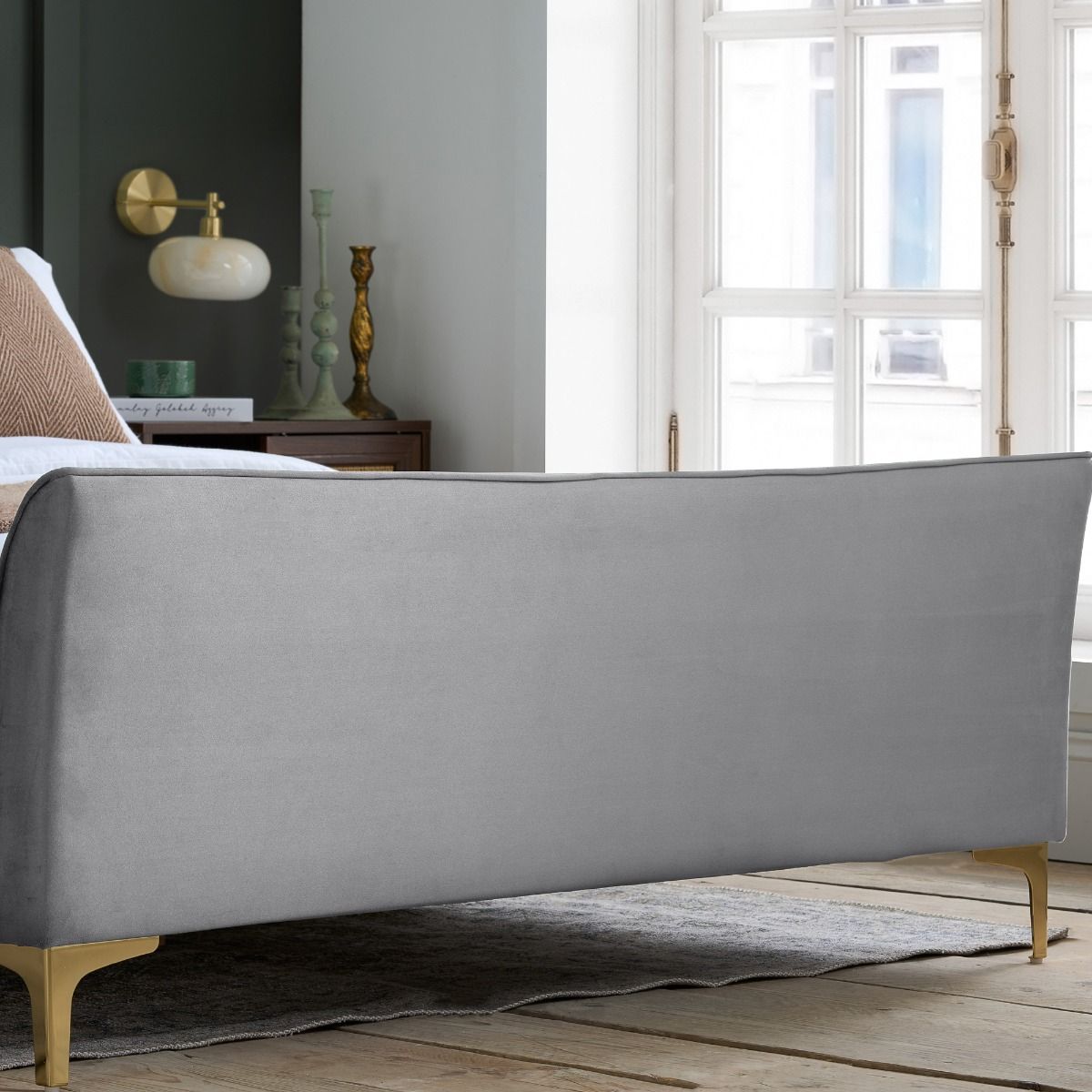 Clover Modern Design Grey Velvet Gold Feets Bed - Standard Double 4ft6