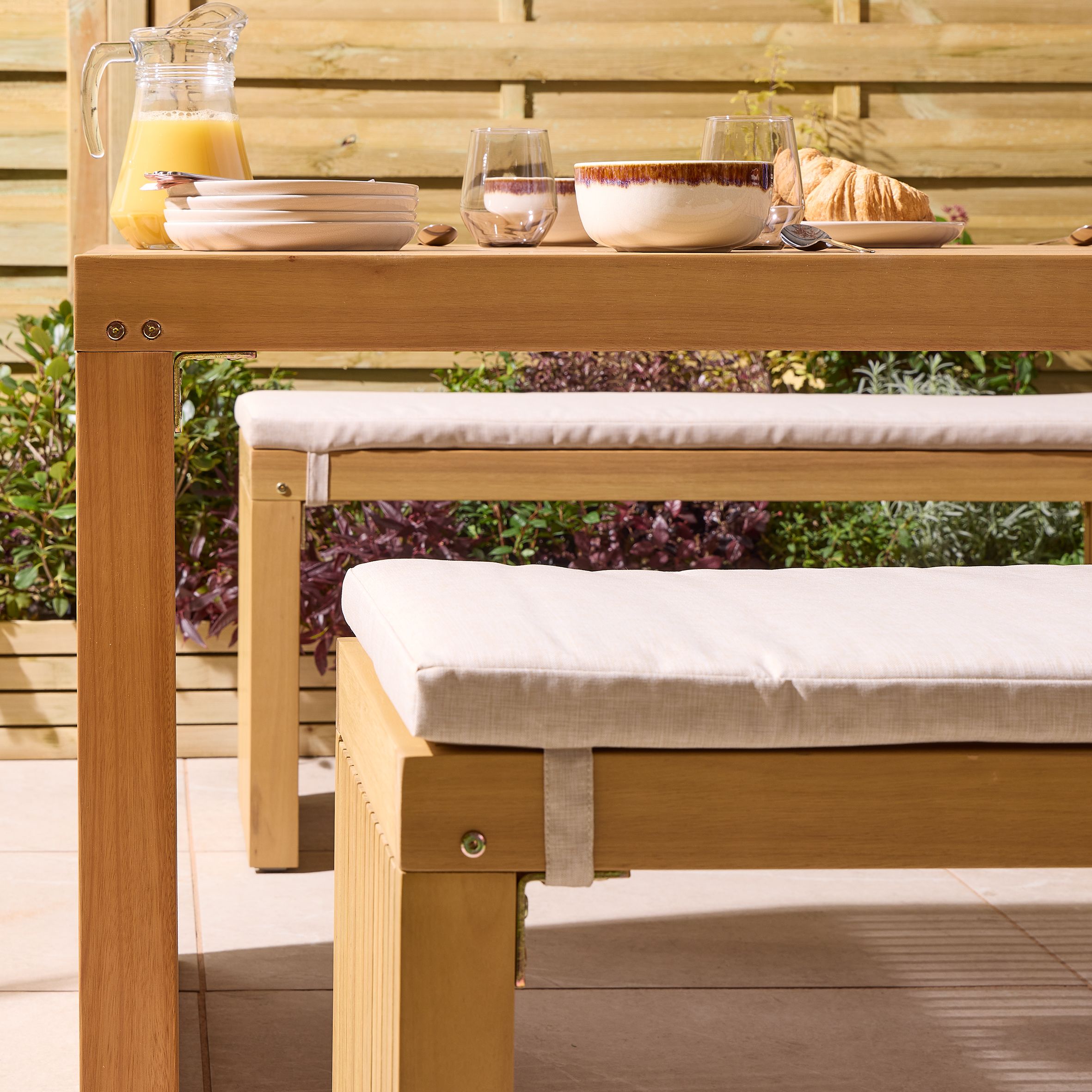 You're reviewing:CLOVETT Garden 4 Seater Table and Bench Set - Oak Finish