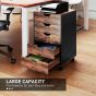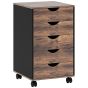 This CLYVERIS filing cabinet makes office storage effortless. It features five drawers, providing plenty of room to organise files and other essentials. Made from robust MDF, it's built for everyday use. The black and rustic brown wood-effect design is a bold and beautiful design - you'll having it in your office! Finished with four wheels to move around easily, with two brakes so it stands in place.
