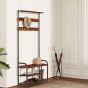 Coat Rack - TARVA Hall Tree with Bench and Shoe Storage 9 Removable Hooks - Rustic Brown