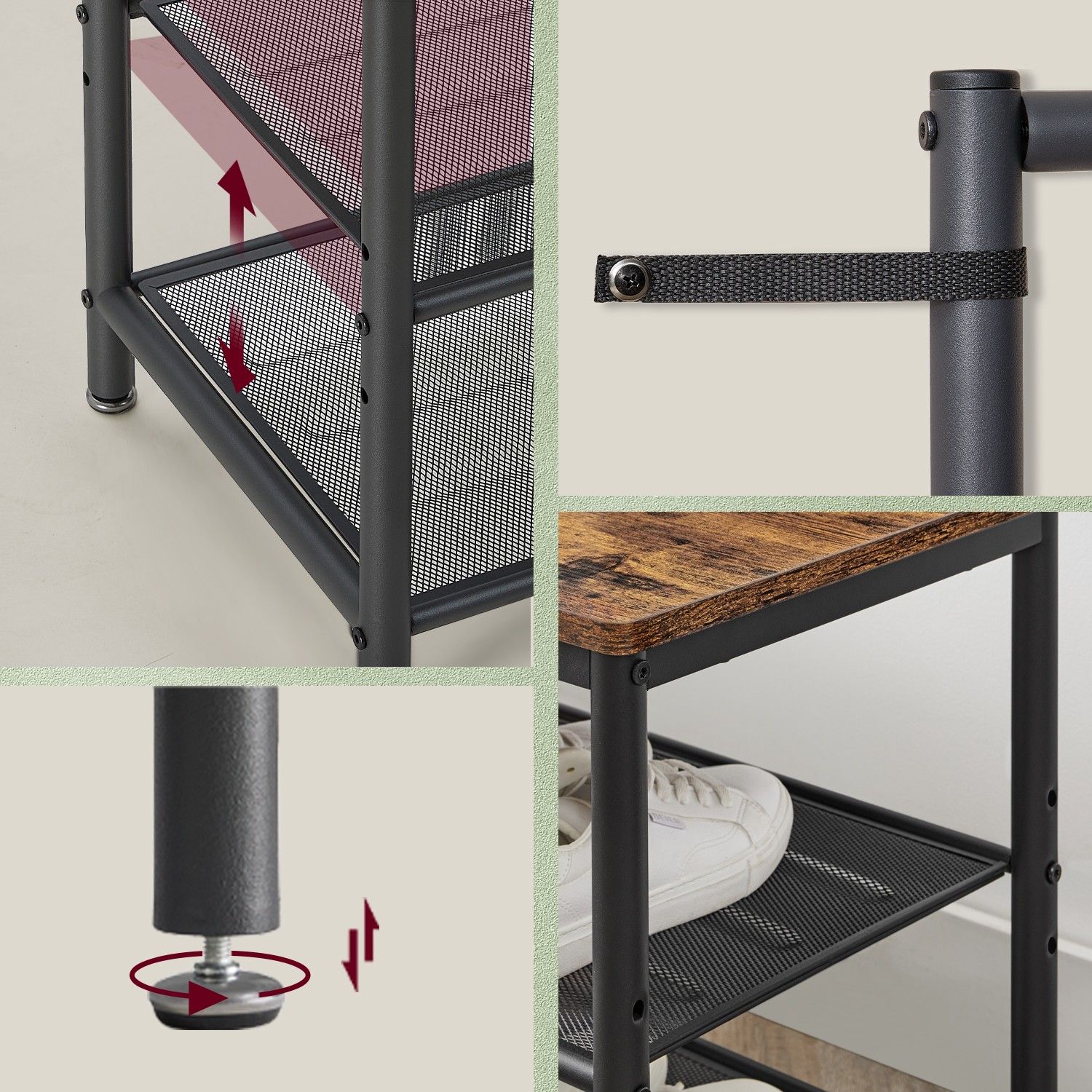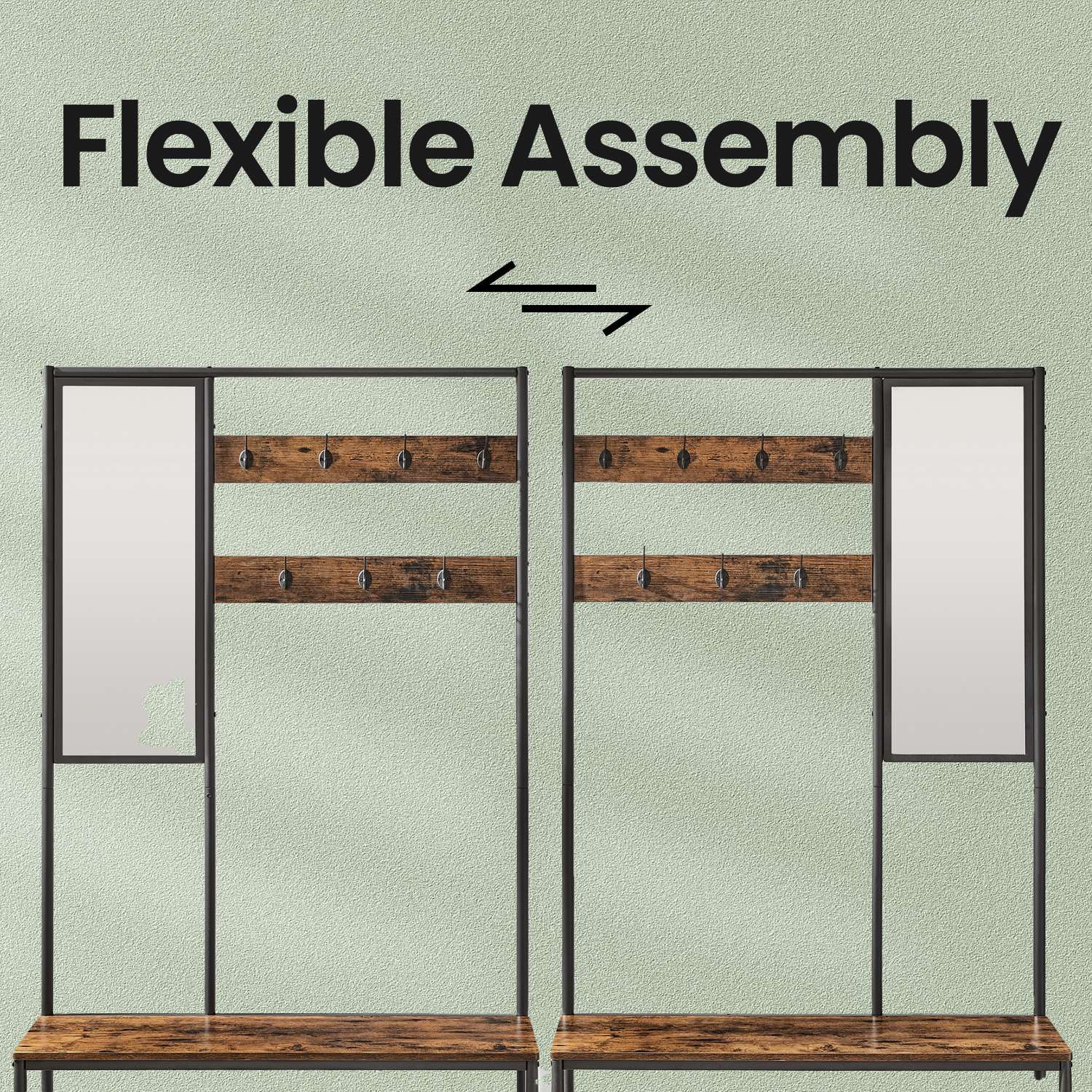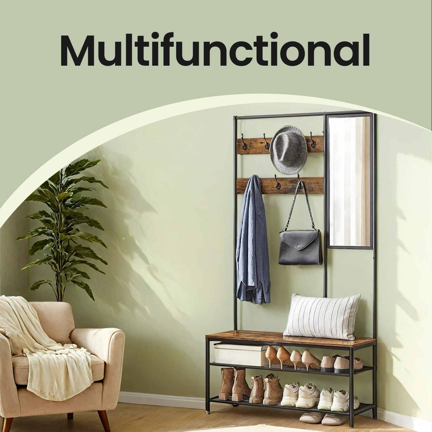 Coat Rack - TARVA Hallway Stand with Shoe Storage and Mirror - Brown Black