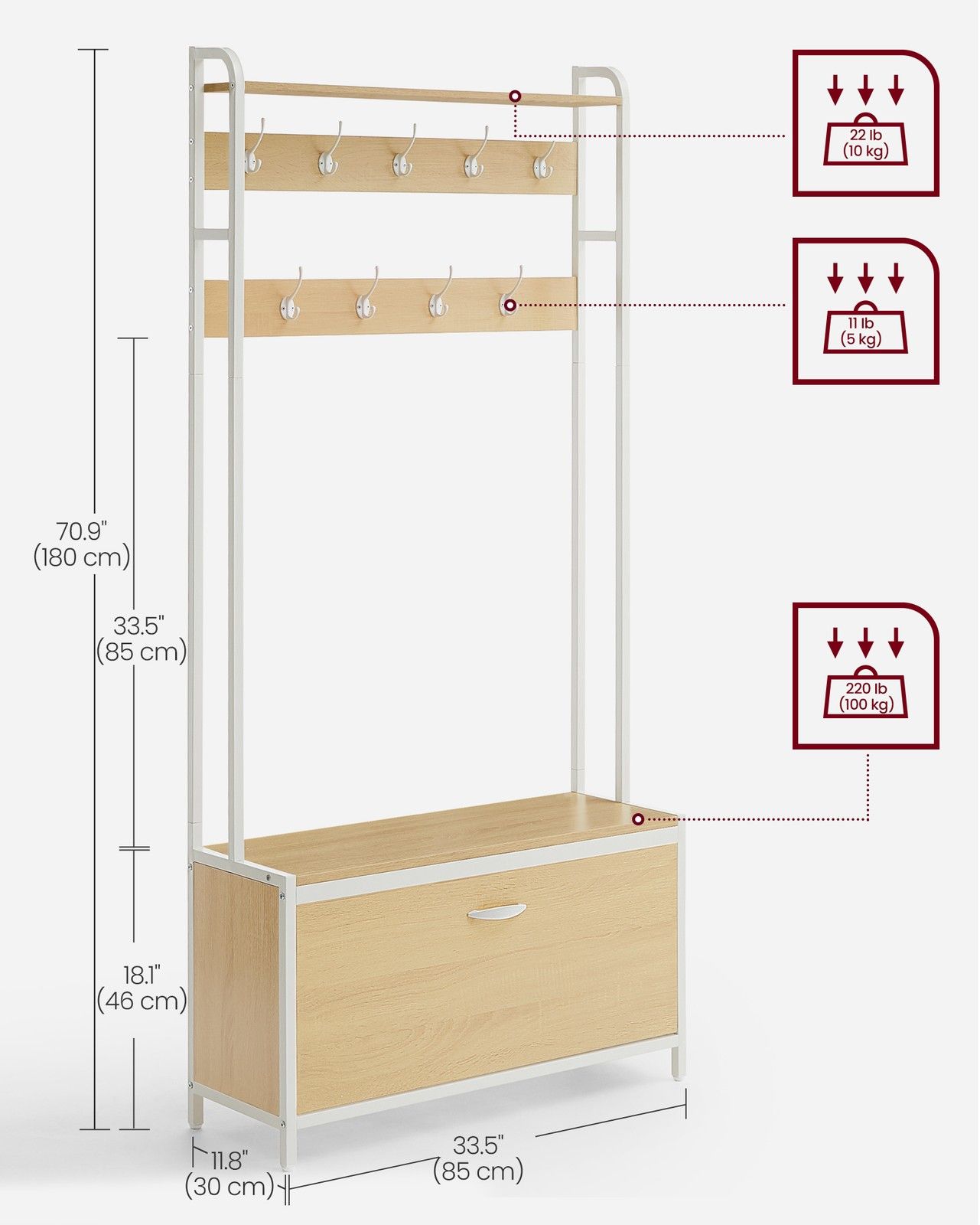 Coat Rack - VELRO Rack Shoe Storage - Golden Oak White