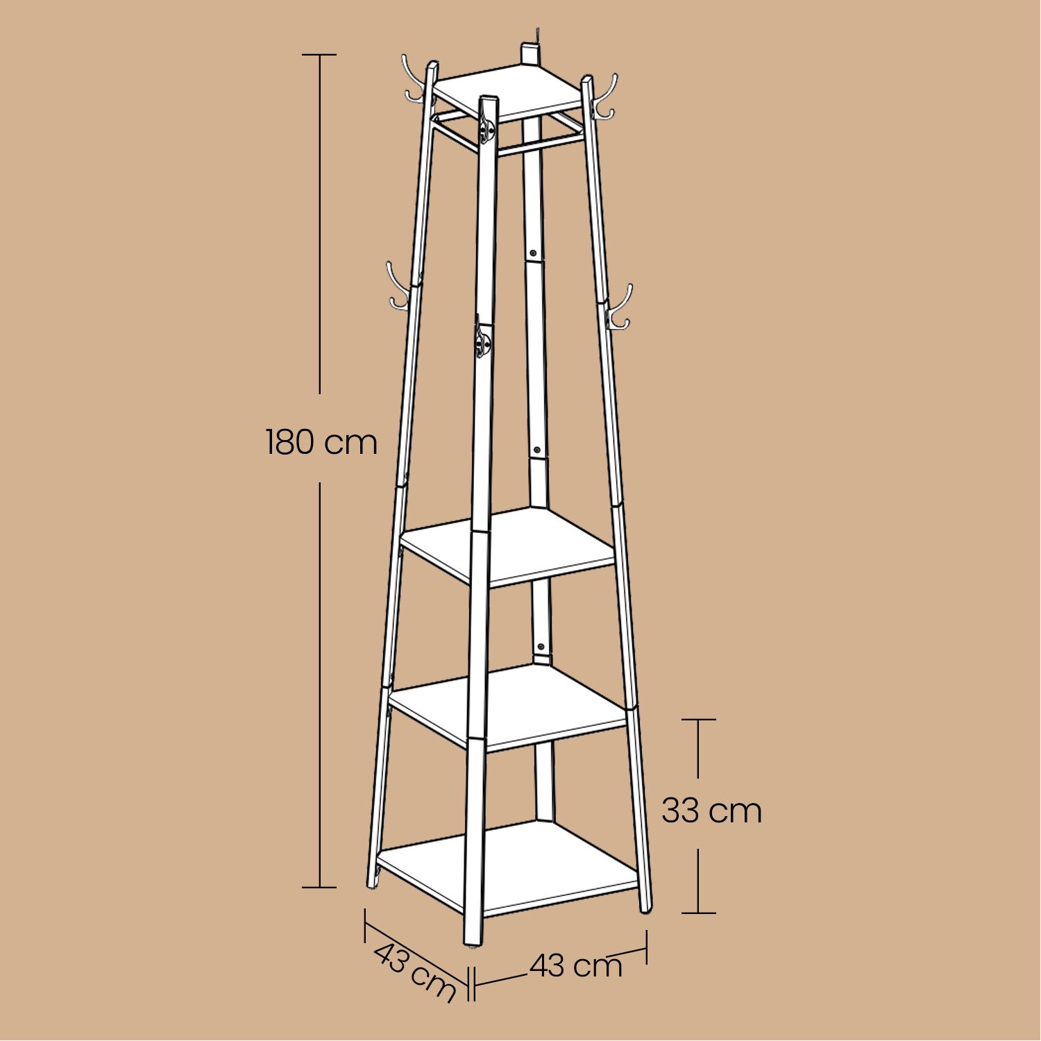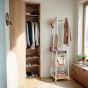 Coat Rack - VERRA Free Standing Hall Tree with 3 Shelves and Hook - White