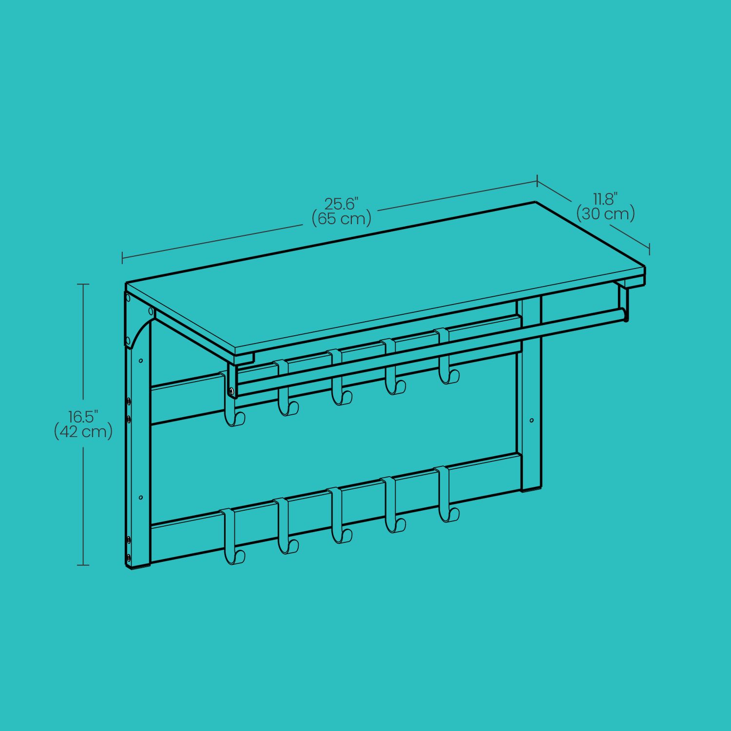 You're reviewing:Coat Rack - VERRA Wall Shelf with 10 Hooks and Clothes Rail - Black