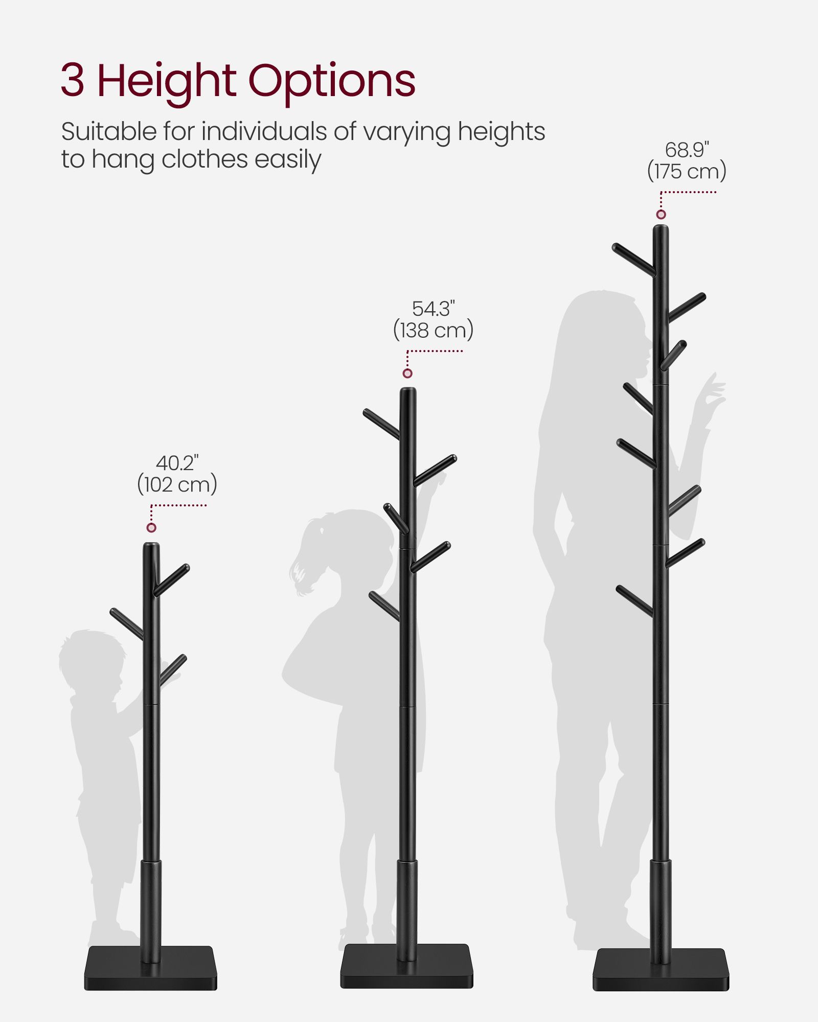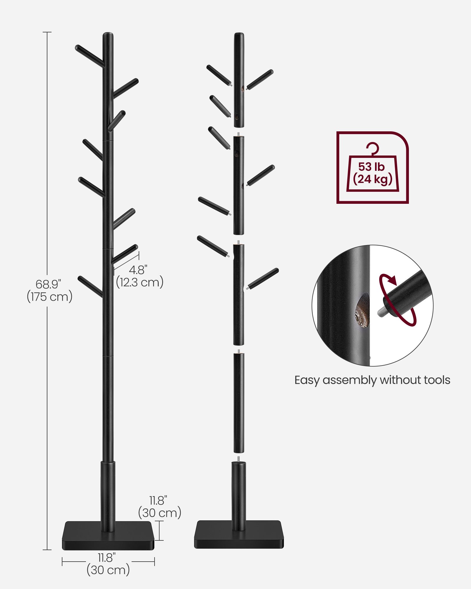 Coat Rack - VIVRAE Free Standing Hall Tree with 8 Hooks - Black