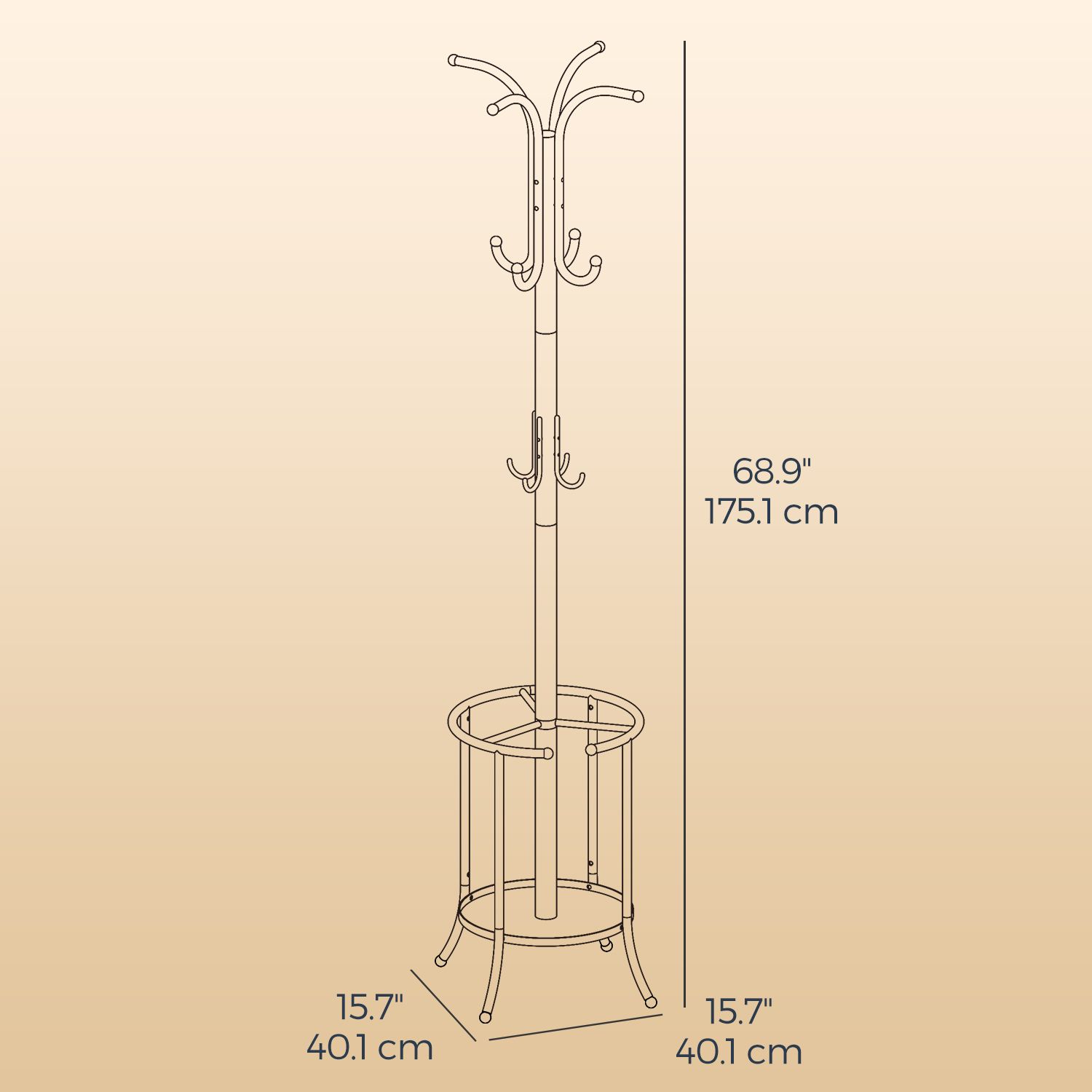Coat Rack - ZARNIA Freestanding Metal Stand with Umbrella Holder and 12 Hooks - Black