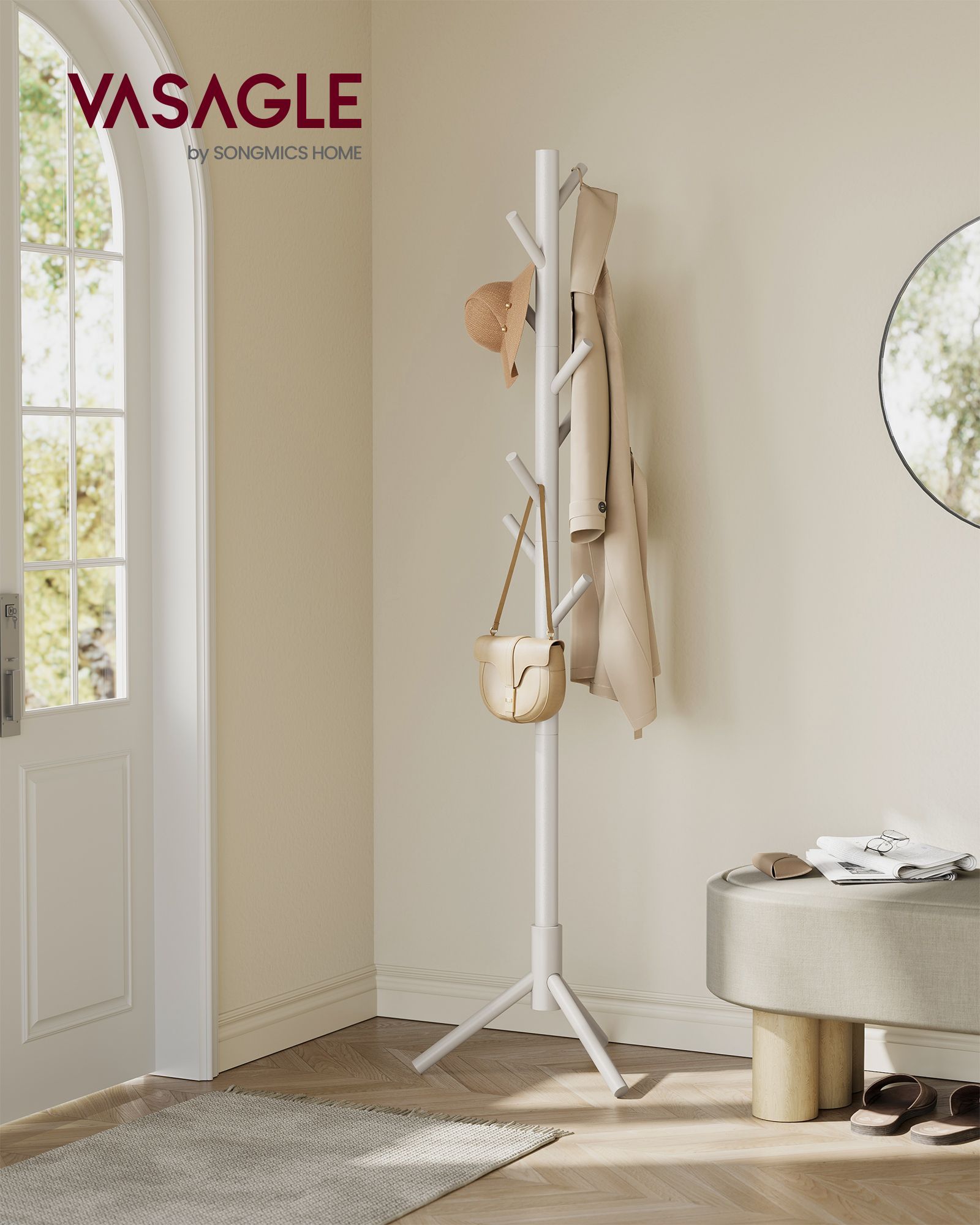 Coat Stand - VIVRAE Solid Wood with 3 Height Options - Cappuccino Beige
