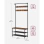This coat stand with shoe bench is a versatile storage solution for entryways or mudrooms. With multiple hooks for coats and bags, as well as a convenient shoe bench underneath, it offers ample space to keep belongings organized and accessible. Crafted from durable materials, this stand combines functionality with style, making it an ideal addition to any home seeking to maximize both storage and aesthetic appeal.