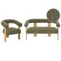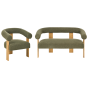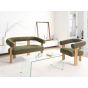 COBDEN Boucle Fabric 2 Seater Sofa and Armchair Sofa Set - Green with Light Oak