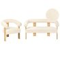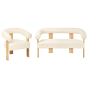 COBDEN Boucle Fabric 2 Seater Sofa and Armchair Sofa Set - Off White with Light Oak