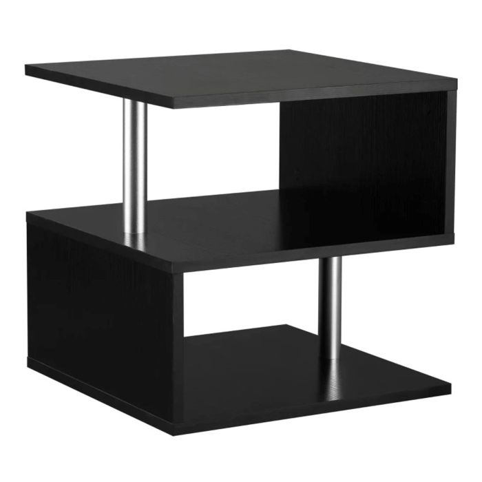 Coffee End Table S shape 2 Tier Storage Shelves Organizer Versatile Home office furniture (Black)