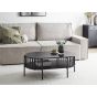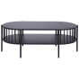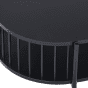 This mid-century modern coffee table provides an ideal spot for serving a dessert or a spot for lunch. Its sleek, black vertical panels give it a modern edge, while the spacious shelf offers the perfect spot for storing the essentials. Placed by the sofa it will give your living space a clean and stylish look.