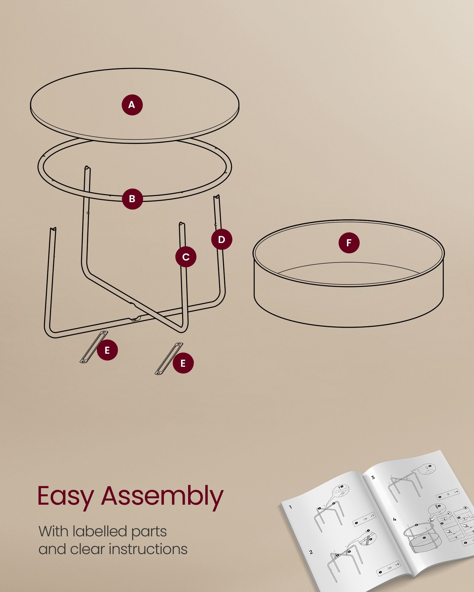 Elevate your living room with this stylish VASAGLE coffee table. Its modern design, featuring a matte white and camel brown finish with a sturdy metal frame, complements any decor. The round tabletop offers ample space for drinks and decor, while the integrated fabric basket provides convenient storage for remotes, magazines, or blankets. Perfect for keeping your living space tidy and chic.