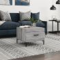 Add a touch of elegance to your living room with this stylish coffee table. Durable material: The engineered wood is of exceptional quality with smooth surface and also features strength, stability and resistance to moisture.Ample storage space: The side table has a drawer, offering ample storage space to keep your essentials well-organised and within reach.Sturdy tabletop: The sturdy tabletop of the sofa table is perfect for placing your drinks, food and other decorative items.Iron legs: The iron legs add a calm style to your interior while ensuring stability.