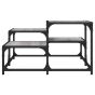 Decorate your living room with this stylish coffee table, it easily blends with furniture in any style at your house. Durable material: The engineered wood is of exceptional quality with smooth surface and also features strength, stability and resistance to moisture. Made of engineered wood, the sofa table is easy to clean.Displaying function: This square coffee table consists of different height tops, which ensures that each leaf can contain its own decoration.Sturdy top: The sturdy tabletop of the couch table is ideal for placing your drinks or any other necessities you need close at hand.Metal frame: The metal frame adds an industrial style to your interior while ensuring durability and stability.Adjustable feet: The adjustable feet with plastic pads keep the centre table balanced on uneven ground and increase stability.