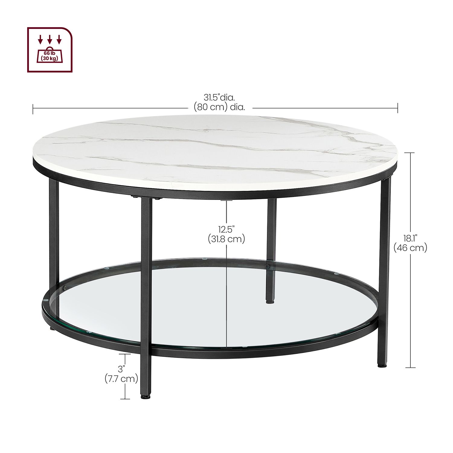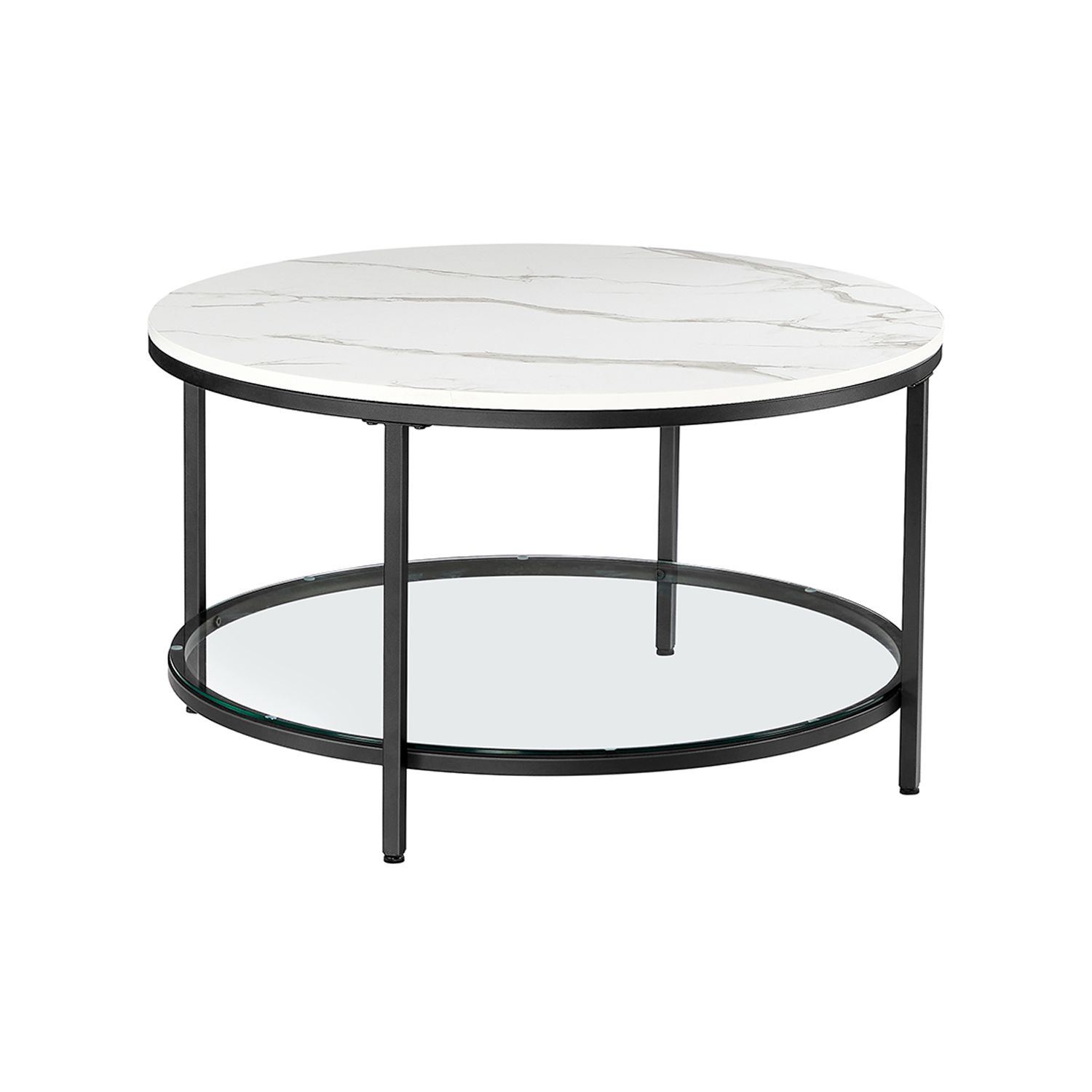 Coffee Table - LUMON Round Faux Marble Table with Marble White and Black - White and Black