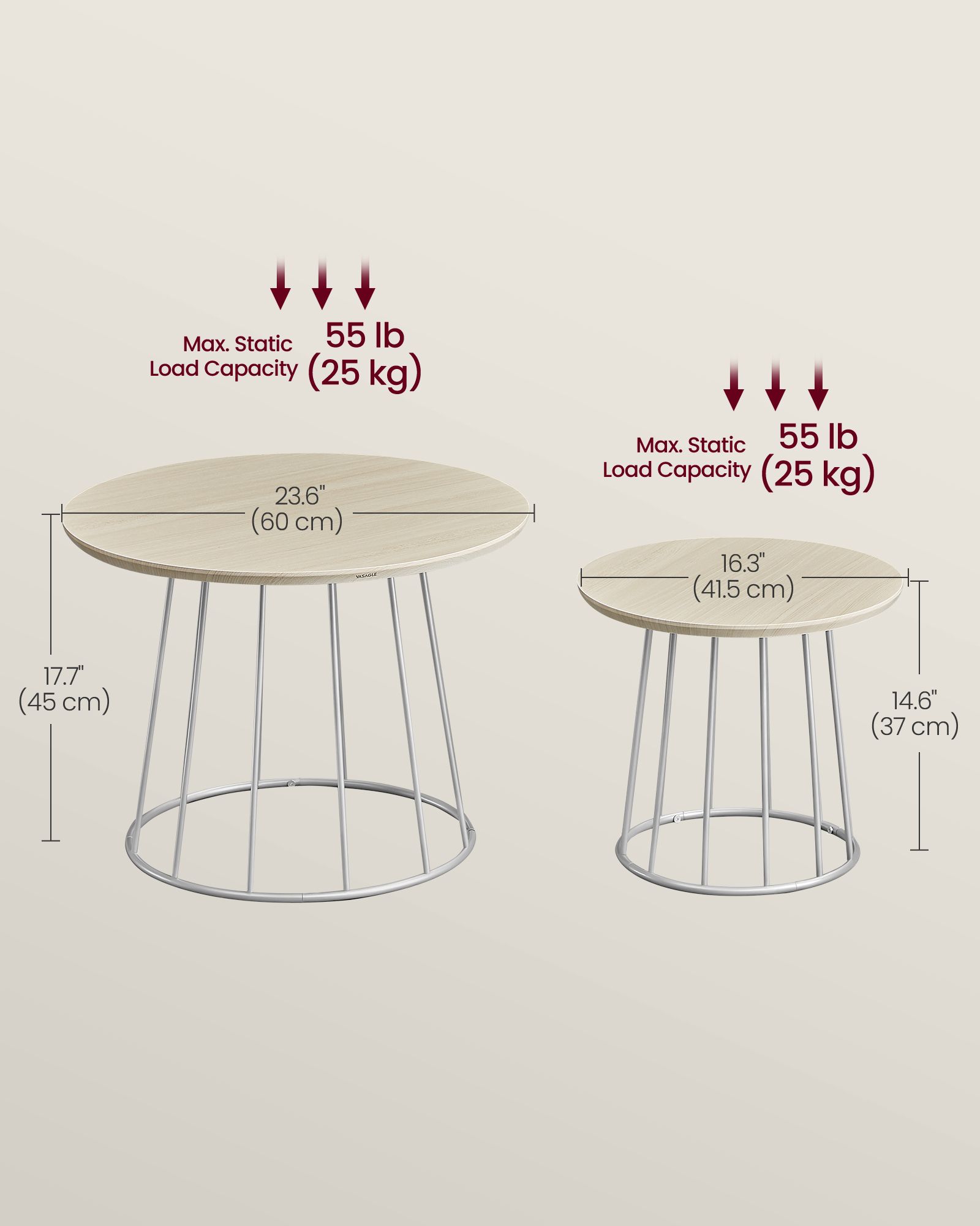 Max-Static Load Capacity: of Each Table: 55 lb (25 kg)