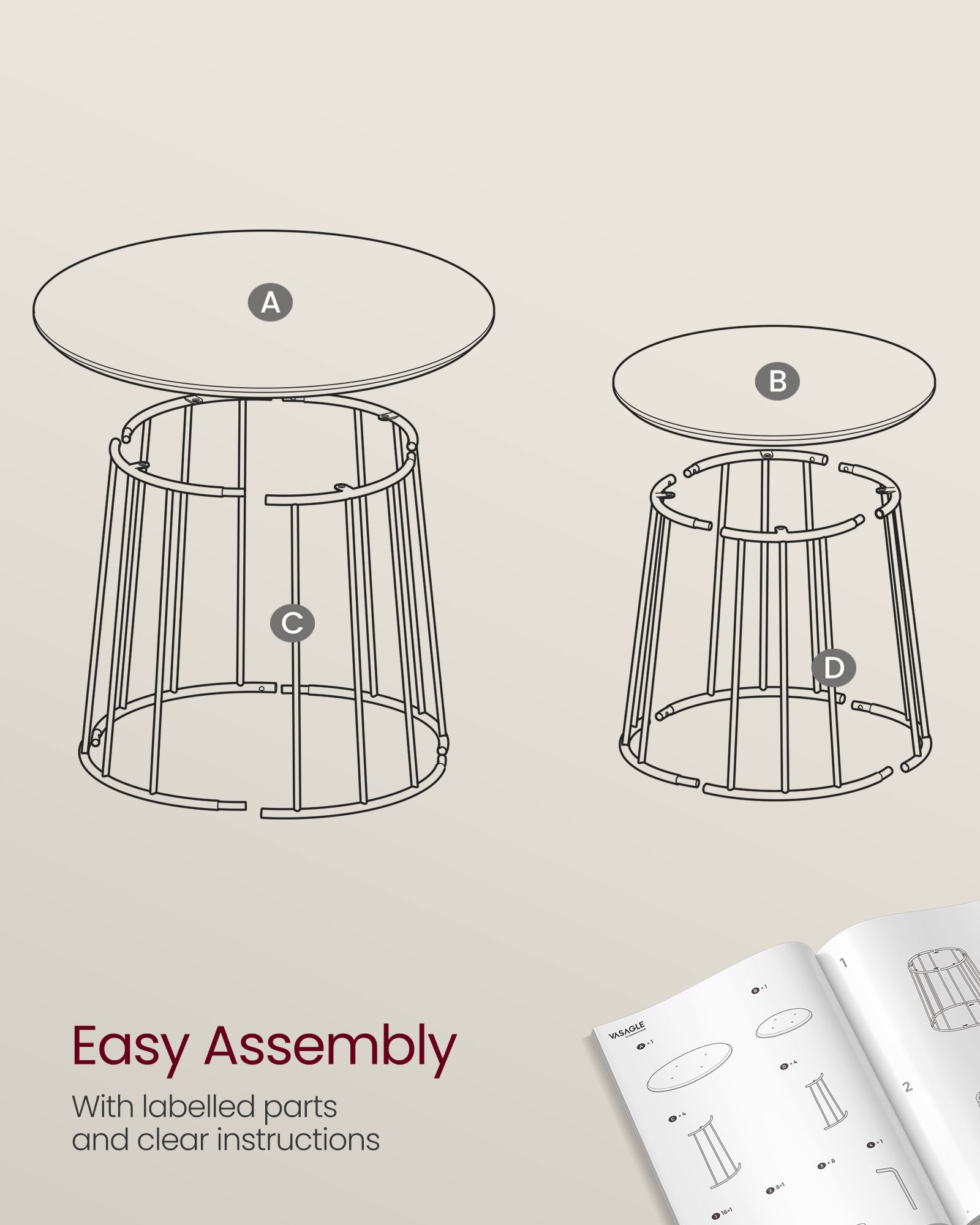 Elevate your living space with this stylish set of two VASAGLE coffee tables. Crafted with a modern aesthetic and a sturdy steel frame, these round side tables offer a rustic brown finish that complements any living room or bedroom. Perfect for holding drinks, books, or decor, they bring both functionality and a touch of natural beige charm to your home.