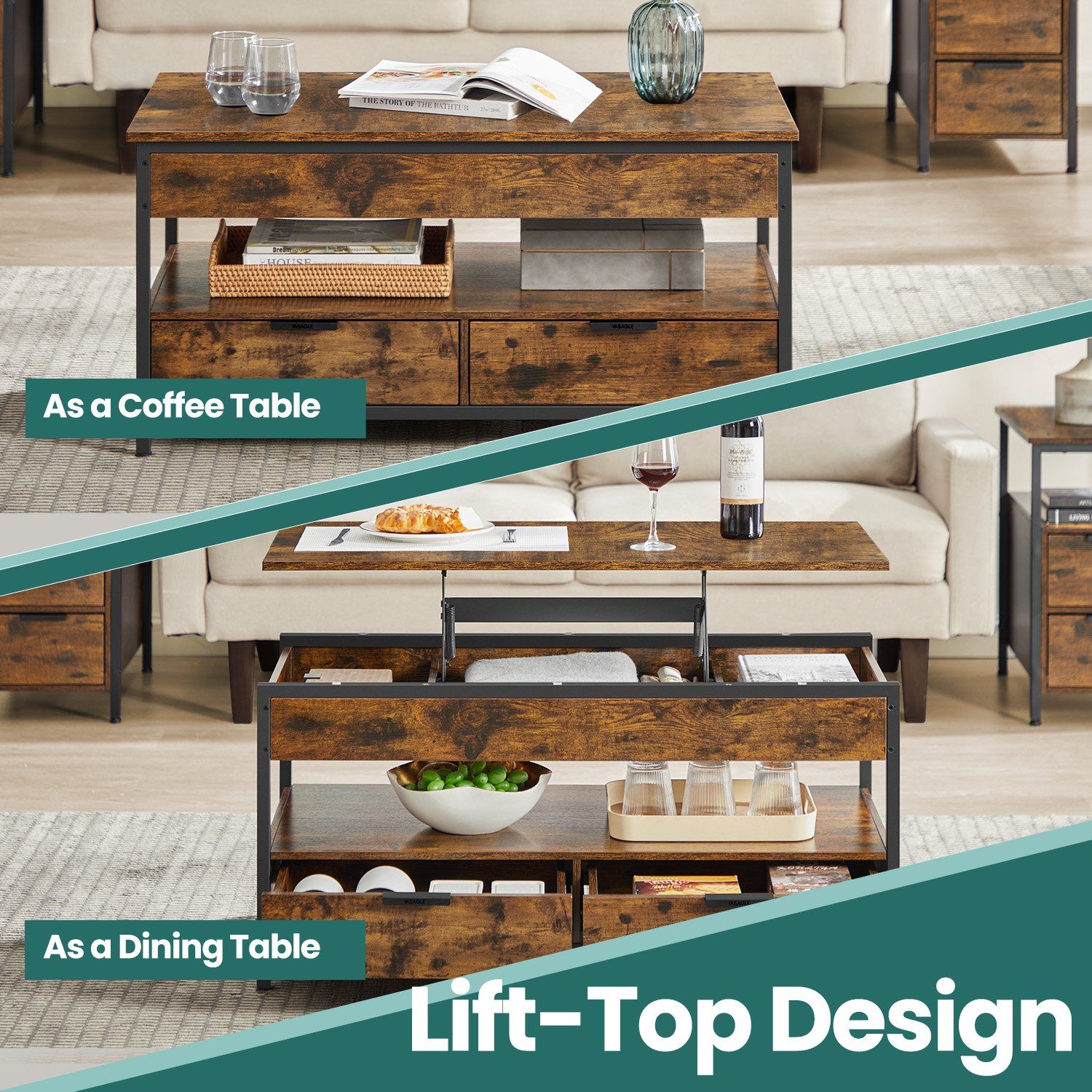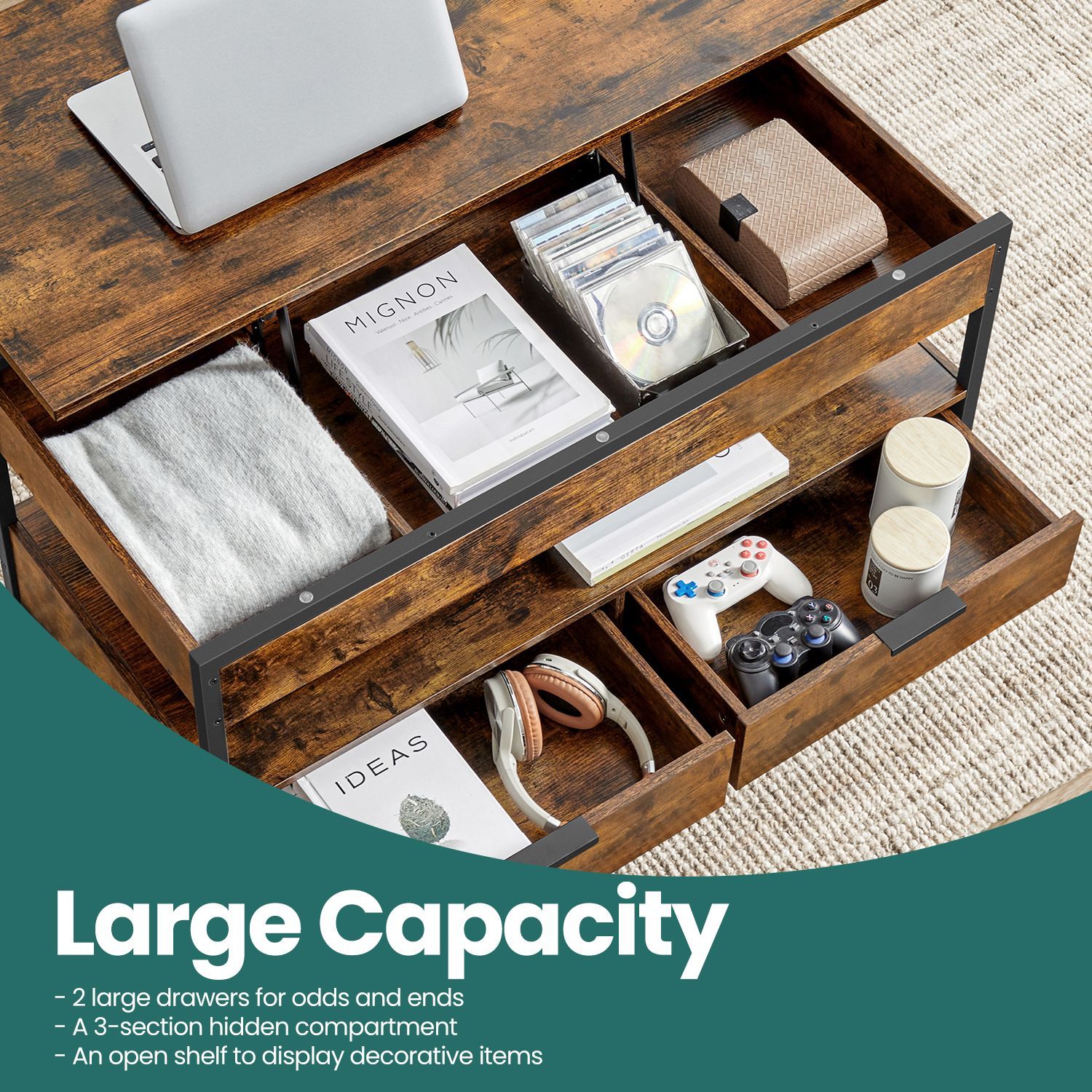 Coffee Table - VERRA Lift Top with Storage Drawer - Camel Brown