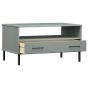 Coffee Table with Metal Legs Grey 85x50x45 cm Solid Wood OSLO