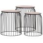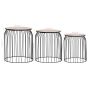 This set of 3 coffee tables exude a vintage charm and will make a distinctive addition to your home decor. They can also be used as storage baskets, couch tables, side tables, etc. The solid wood tabletop provides a smooth and stable surface on which you can place drinks, vases or other decorative items. By removing the top, you can turn the side table into a storage basket. Moreover, the smaller table can be placed inside the larger one to save space. The strong powder-coated metal frame adds to the robust construction as well as an industrial look.