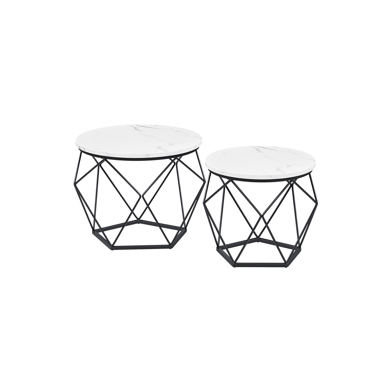 Coffee Tables - LUMON Set of 2 Round Marble Tables - White and Black