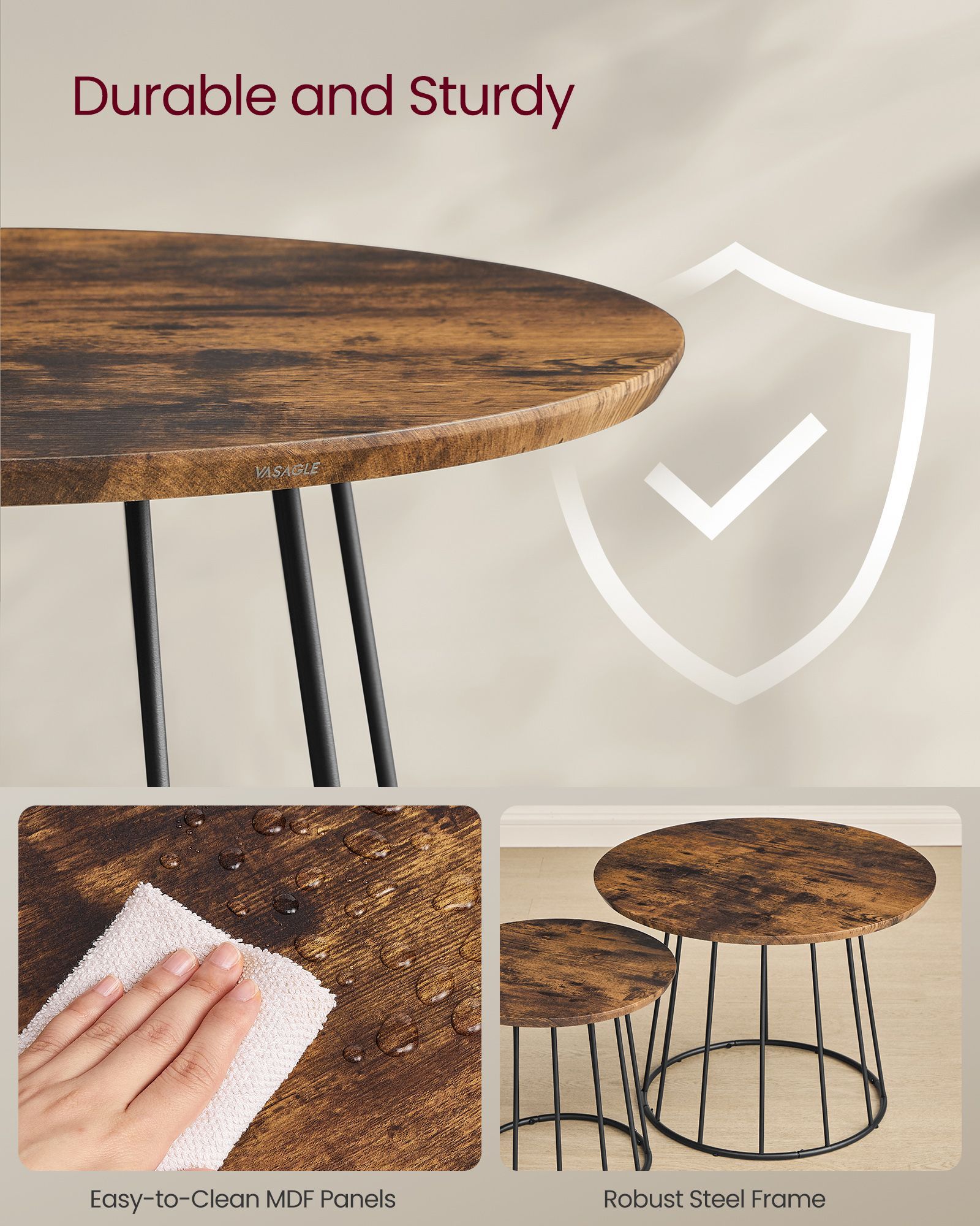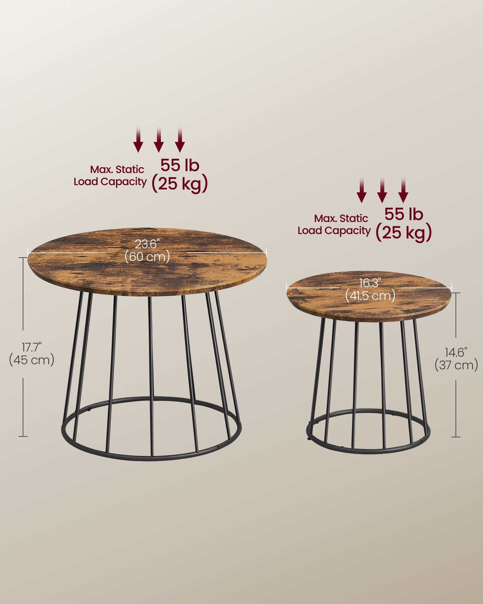 Coffee Tables - LUMON Set of 2 Round Steel Frame Tables - Rustic Brown