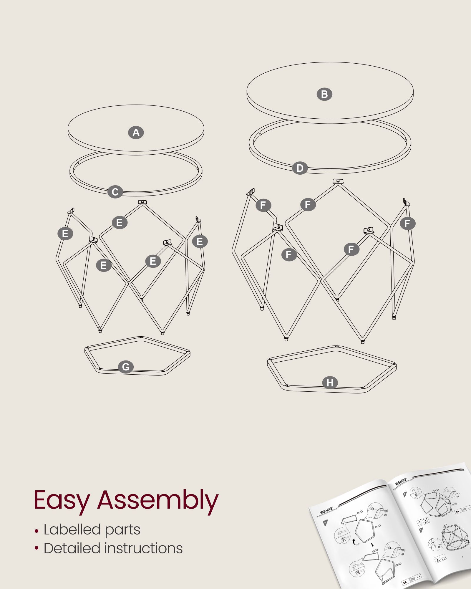 Coffee Tables - VIVVAS Set of 2 Round Tables Slate Grey Black