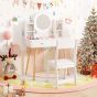 COIN Kids Princess Vanity Desk Set with 2-Color LED Lighted Acrylic Mirror-White