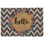 Discover the perfect blend of functionality and style with this indoor doormat, crafted from natural coir fibres. This mat is an eco-friendly choice that not only captures dirt and moisture with ease but also ensures safety with its robust anti-slip backing. The piece features a welcoming text, as well as a head-turning chevron pattern and floral motif. Designed to keep your floors clean and your space looking effortlessly elegant, this doormat is a must-have for every interior decor style, from modern to boho. Details: Color: Multicolour. Main material: Coir. Material Composition: 100% Coir Weight: 1.4 Assembly: Does Not Require Assembly