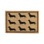 Elevate the practicality of your home entrance with this rectangular doormat, made from natural coir fibres. Featuring a print of playful pups, including charming dachshunds, this mat brings a delightful touch to your doorstep, while the environmentally-friendly materials effectively trap dirt and moisture. Enhanced with a robust anti-skid foundation, it ensures both security and longevity. Details: Color: Natural, Black. Main material: Coir. Material Composition: 100% Coir Weight: 1.4 Assembly: Does Not Require Assembly