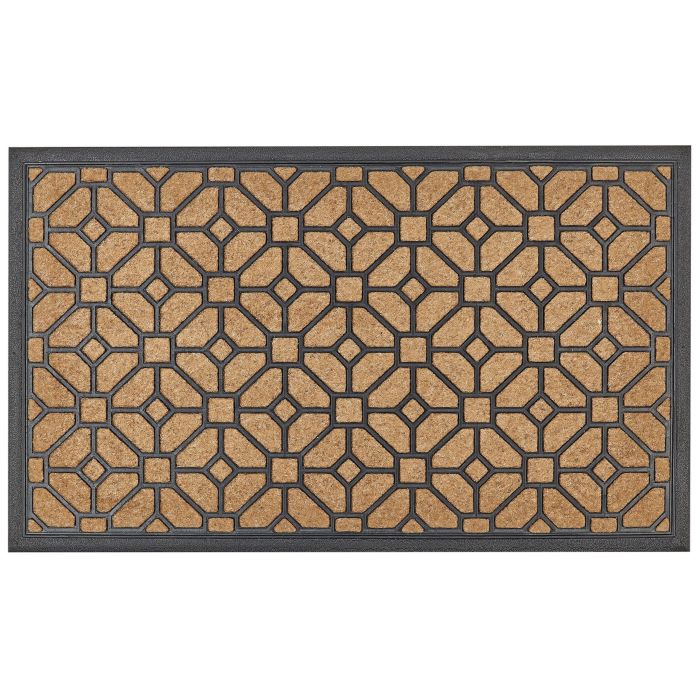 Upgrade your home's entryway with this framed coir doormat. The classic natural centre, arranged in a geometric pattern, is surrounded by a black rubber border, combining durability with a touch of sophistication. Its sturdy construction ensures effective dirt scraping, while the anti-slip base provides a secure footing, making it as practical as it is stylish. Details: Color: Natural, Black. Main material: Coir. Additional material: Rubber. Material Composition: 100% Coir Weight: 2.6 Assembly: Does Not Require Assembly