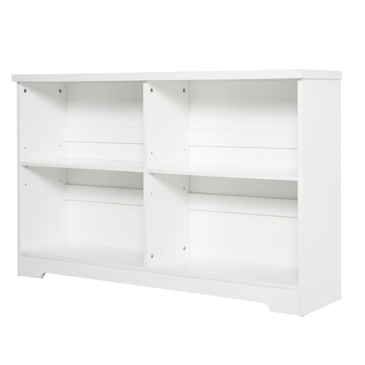 Compact and Stylish 2-Tier Low Bookcase with Cube Shelves - White
