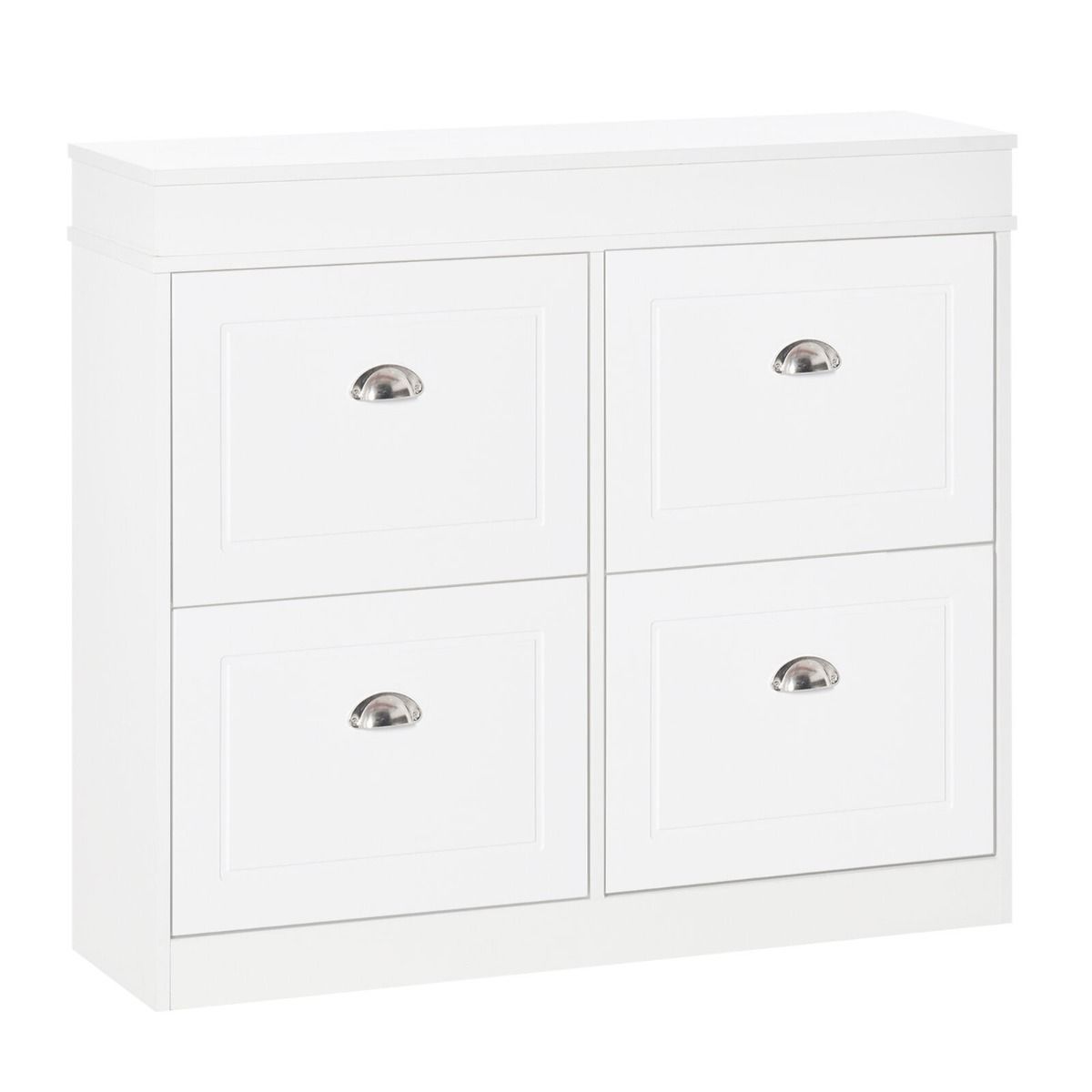 Compact and Stylish 4 Flip Drawers Shoe Cabinet with Adjustable Shelf - White