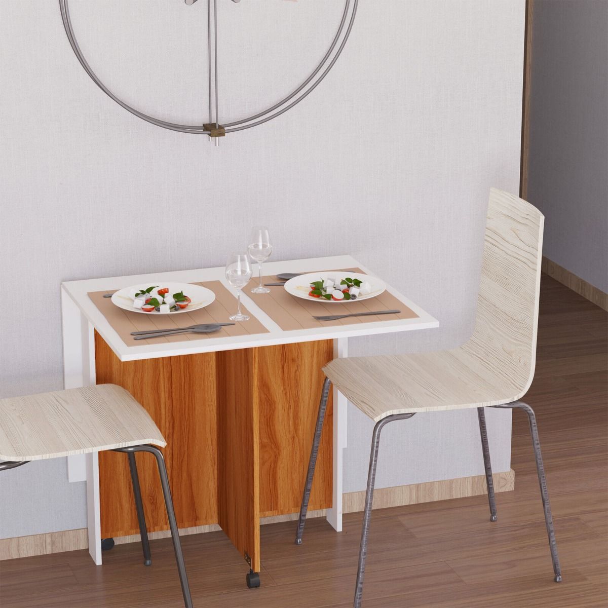 Compact and Stylish Foldable Dining Table with Casters - Teak Colour