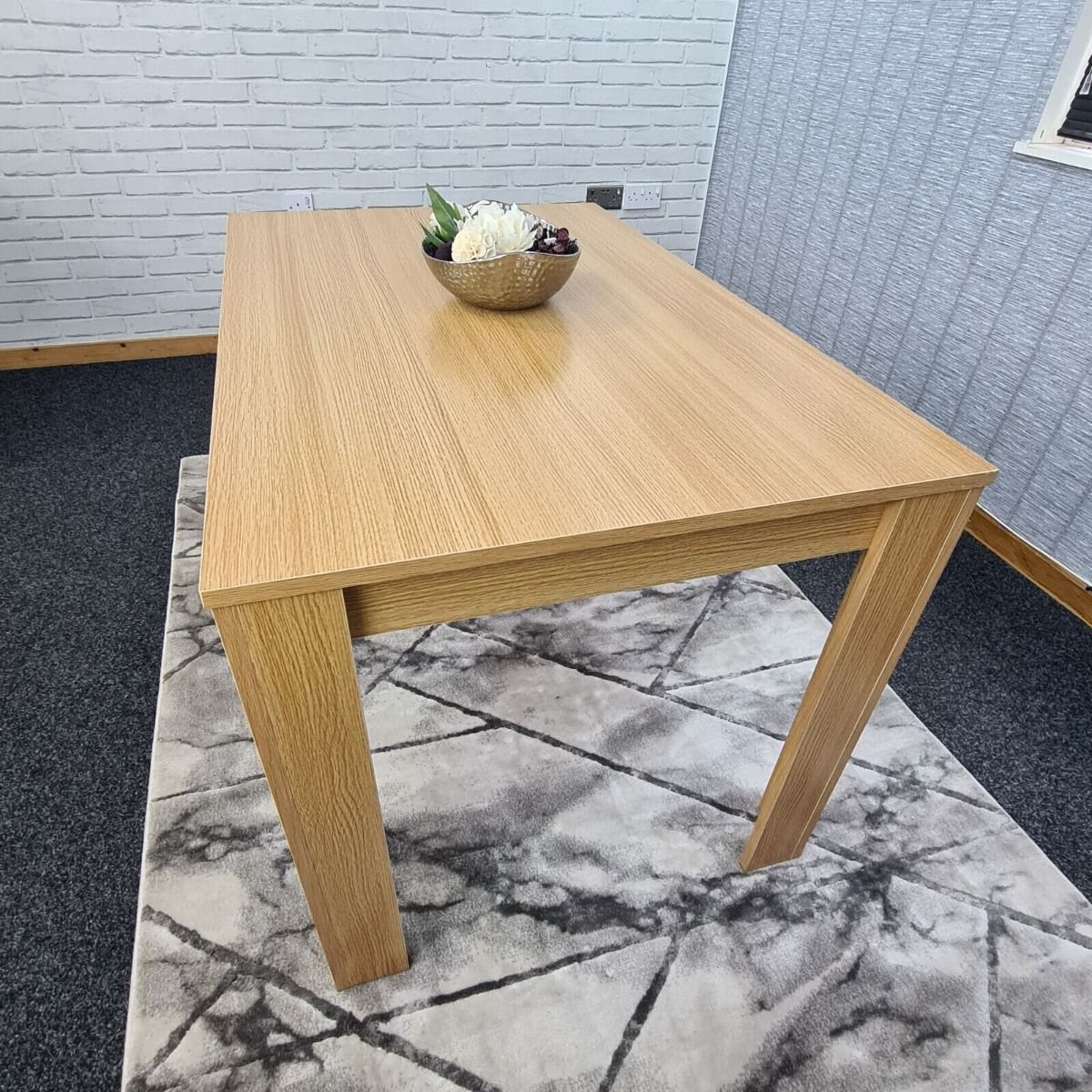 The table is made from wood (oak effect )and has a melamine laminated Light Oak natural wood grain finish which looks great and is easy to wipe clean.