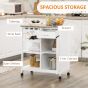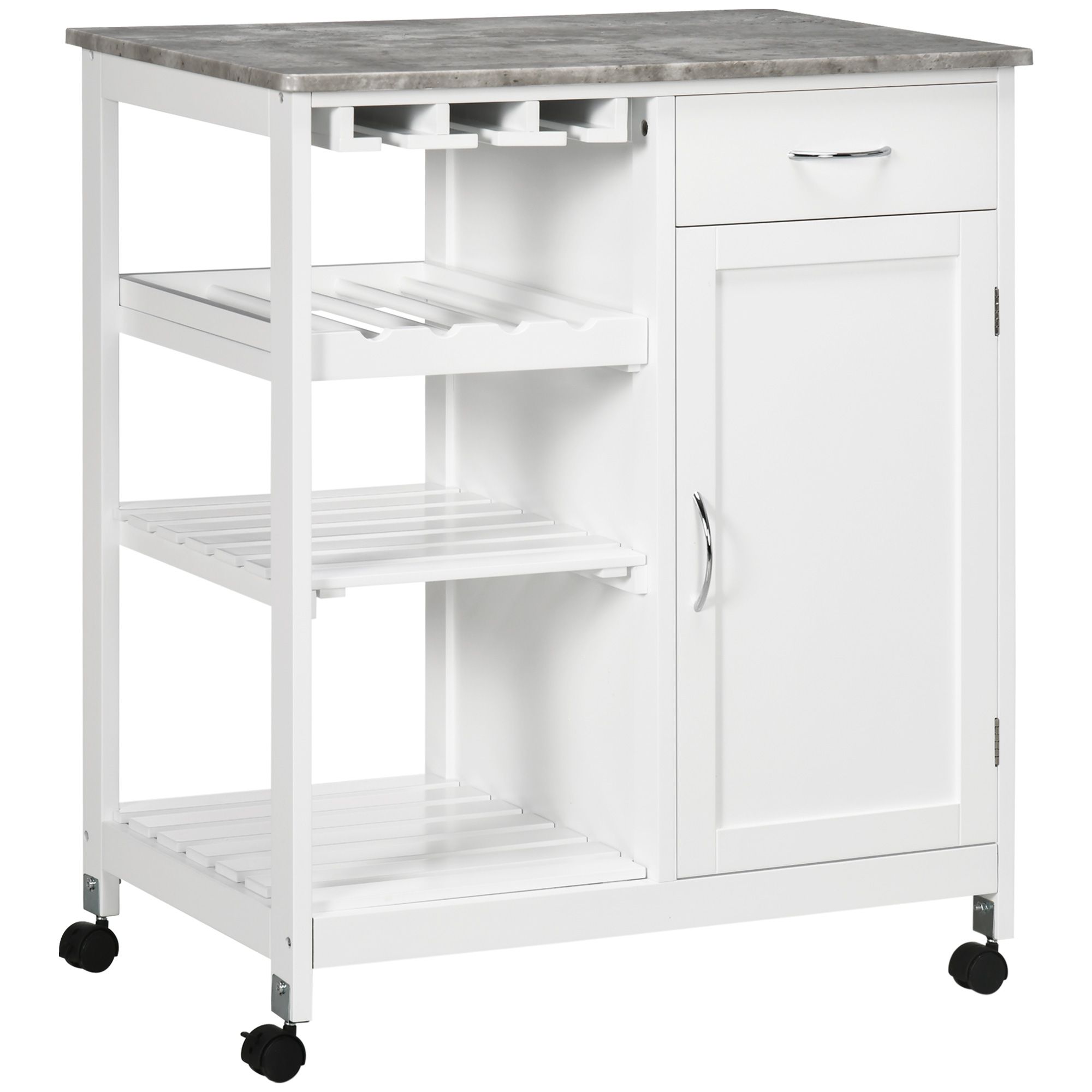 Compact Kitchen Trolley Utility Cart on Wheels with Wine Rack, Drawer, Open Shelf and Storage Cabinet for Dining Room, White
