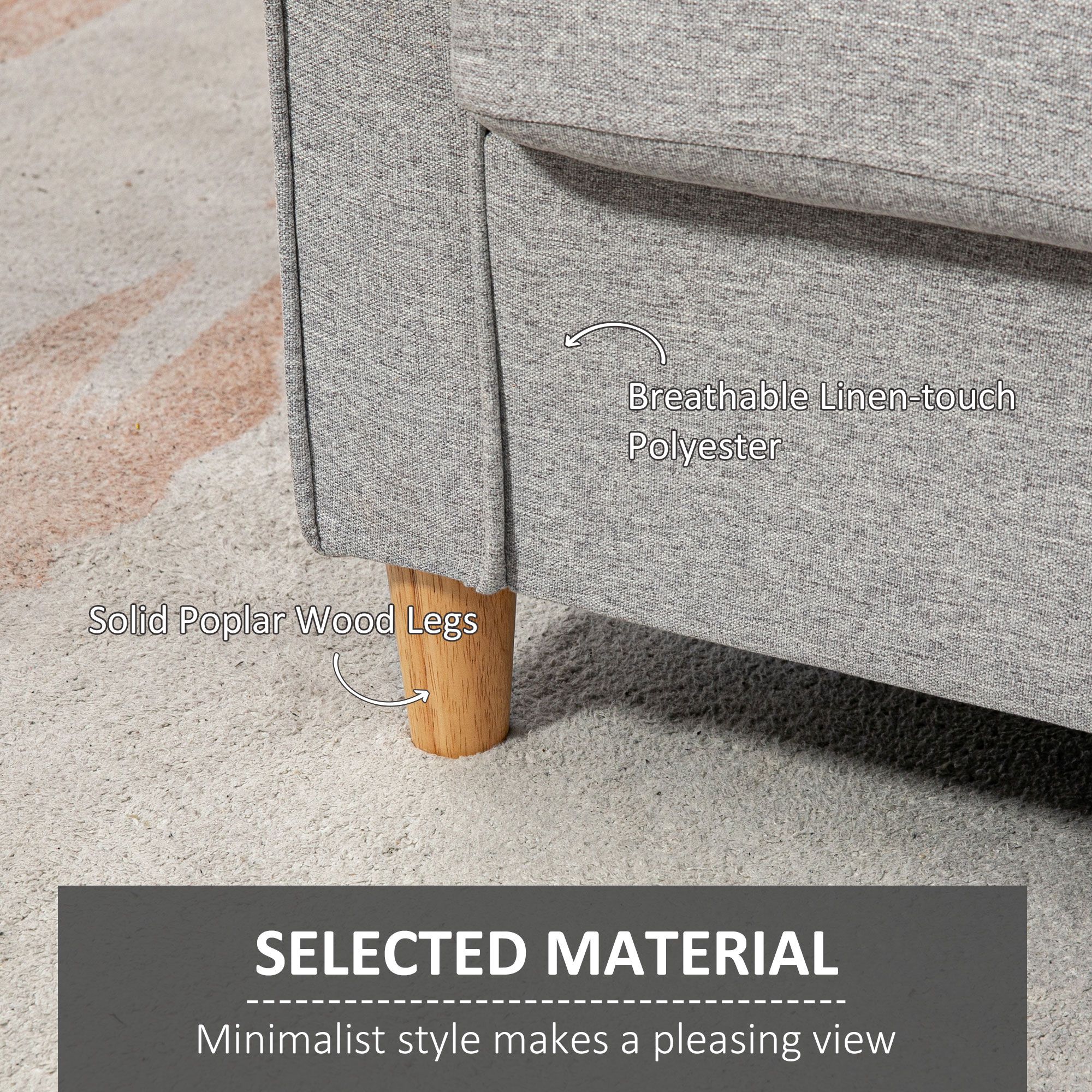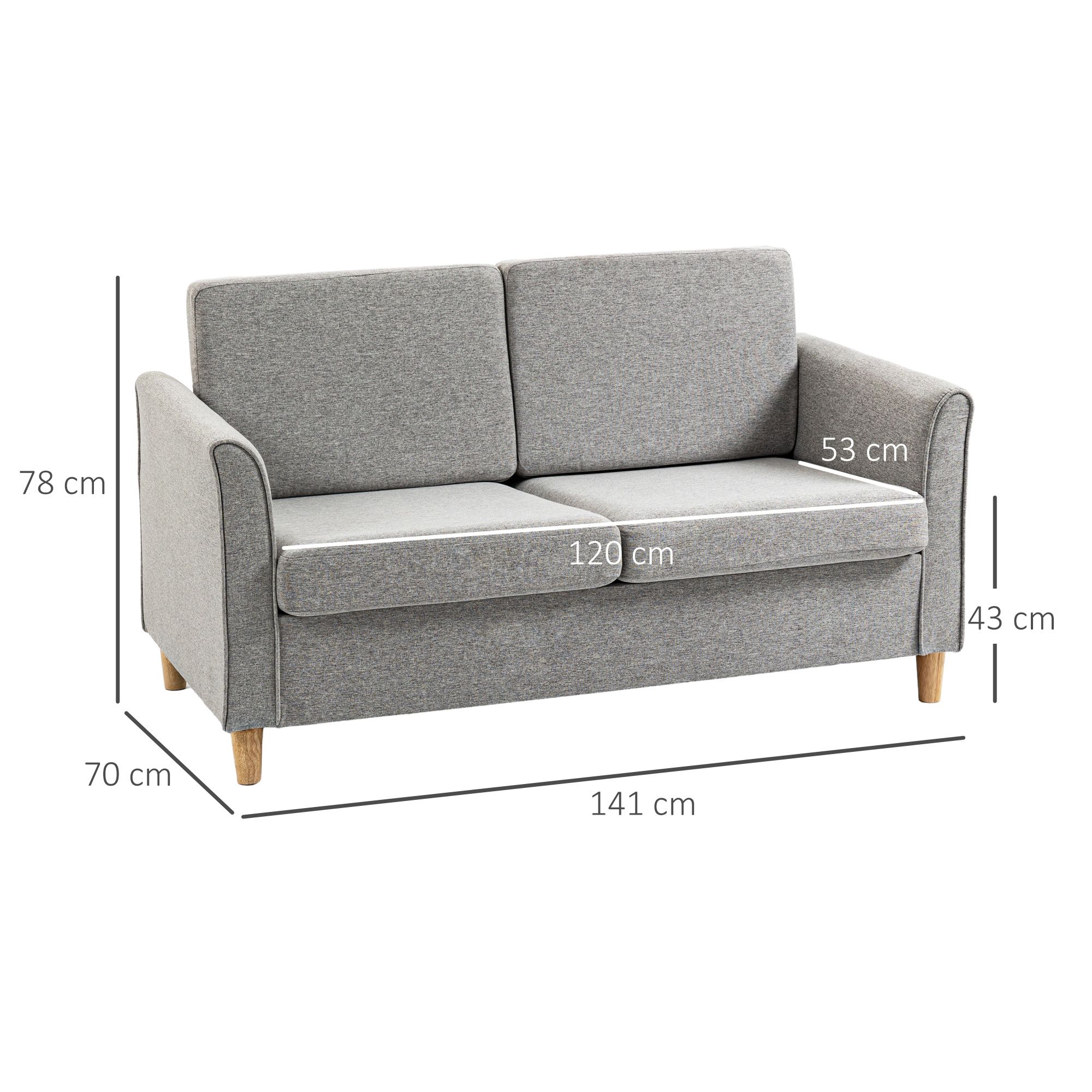 Compact Loveseat Sofa, Modern 2 Seater Sofa for Living Room with Wood Legs and Armrests, Light Grey