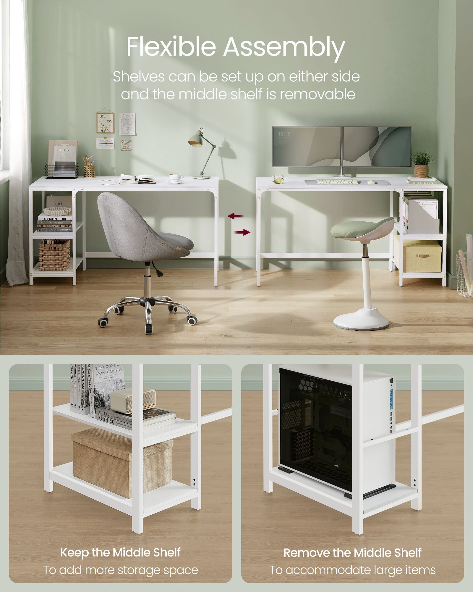 Computer Desk - FINLIA 140 cm Wide with 2 Shelves - Maple White