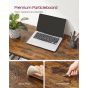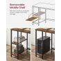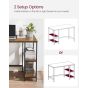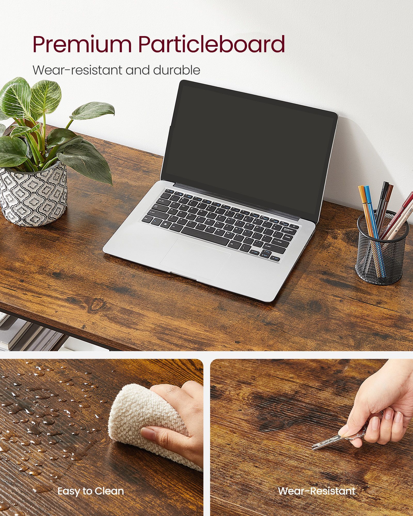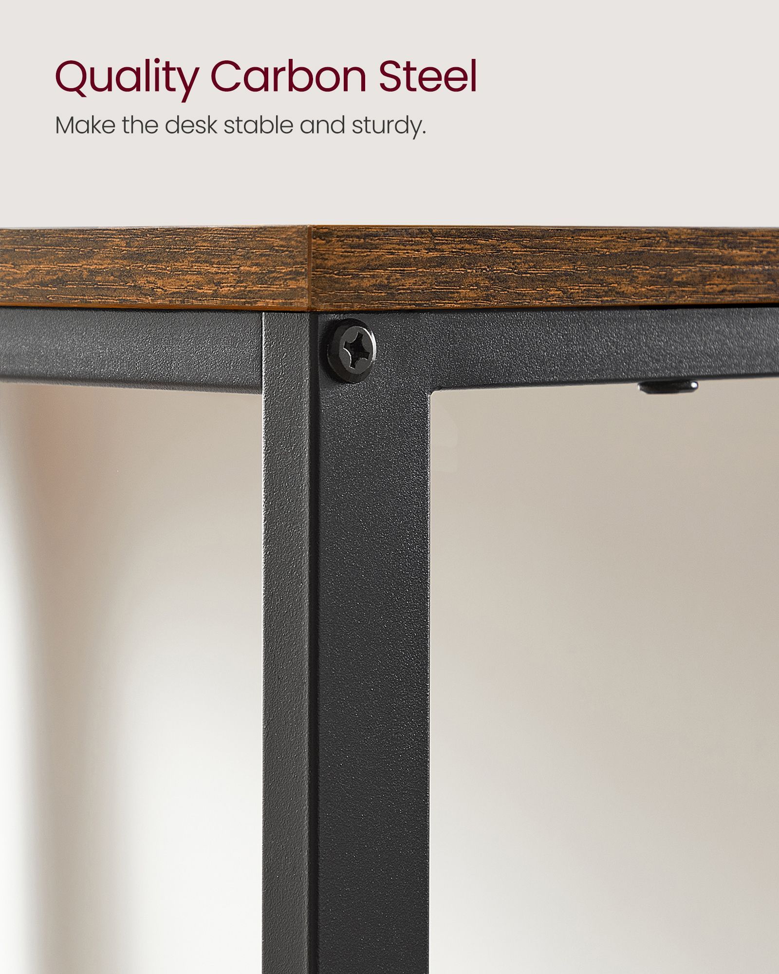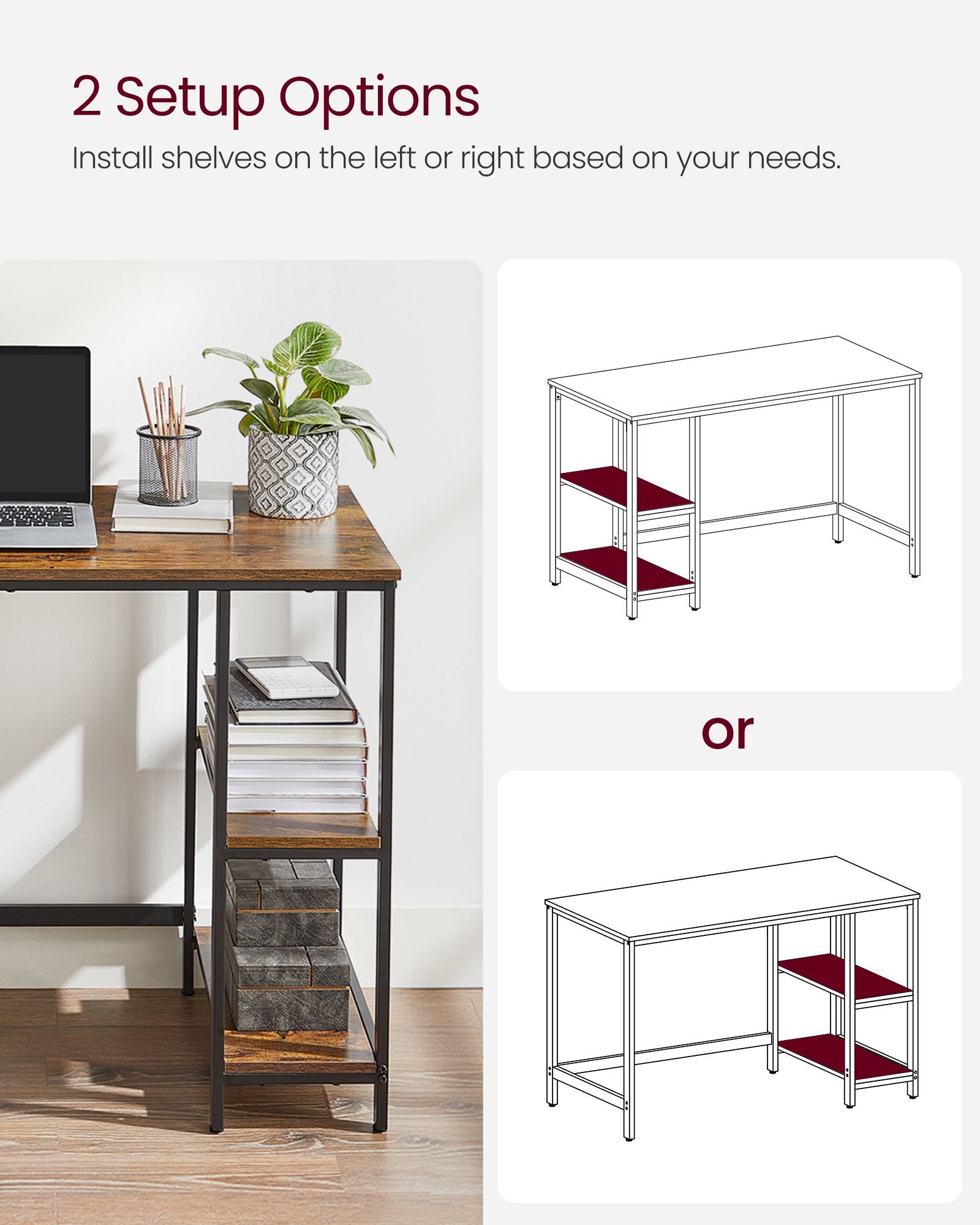 This VASAGLE computer desk, in a stylish rustic brown and ink black finish, is perfect for your home office or living room. Its versatile design allows you to place the two shelves on either the left or right, maximizing your space. The sturdy steel frame ensures durability, making it an ideal modern workspace for writing or computer use.
