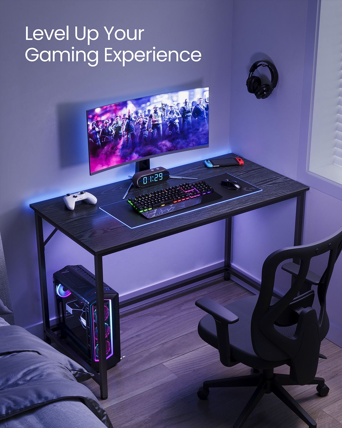 Computer Desk - FINLIA 60 x 120 x 76 cm Wood Grain Effect Desk - Black
