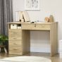 Require space to work and keep all office supplies organised? Then go for this computer desk with drawers. Comes with a wide table top and under-desk space to work from, shelf and five drawers. The below-desk drawer can be locked for security; two keys included. Compact design great for smaller spaces, particle board structure is sturdy and tough. The desk with storage is finished with handles on the left-side drawers to open and close easily.