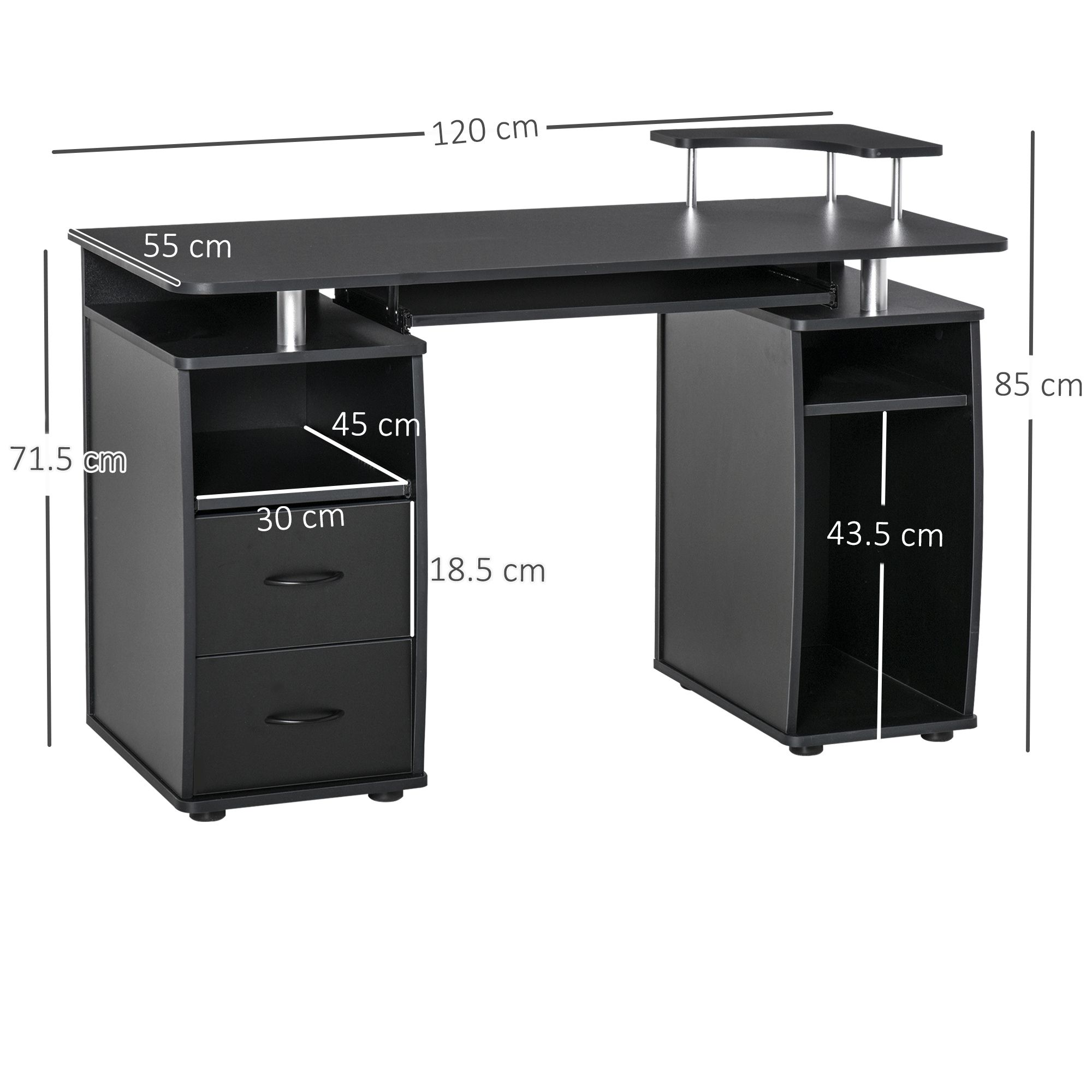 Computer Desk Office PC Table Workstation with Keyboard Tray, CPU Shelf, Drawers, Sliding Scanner Shelf, Black
