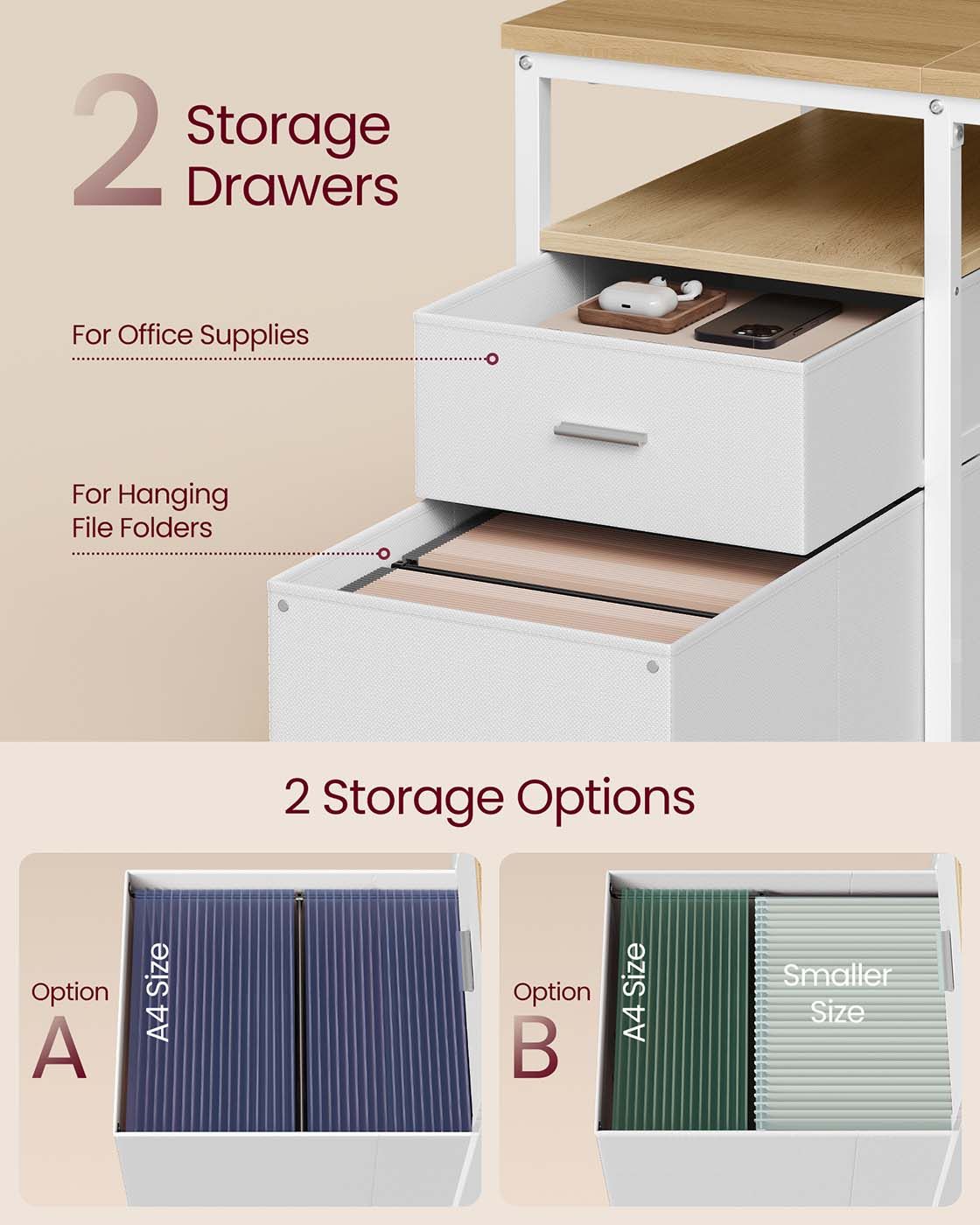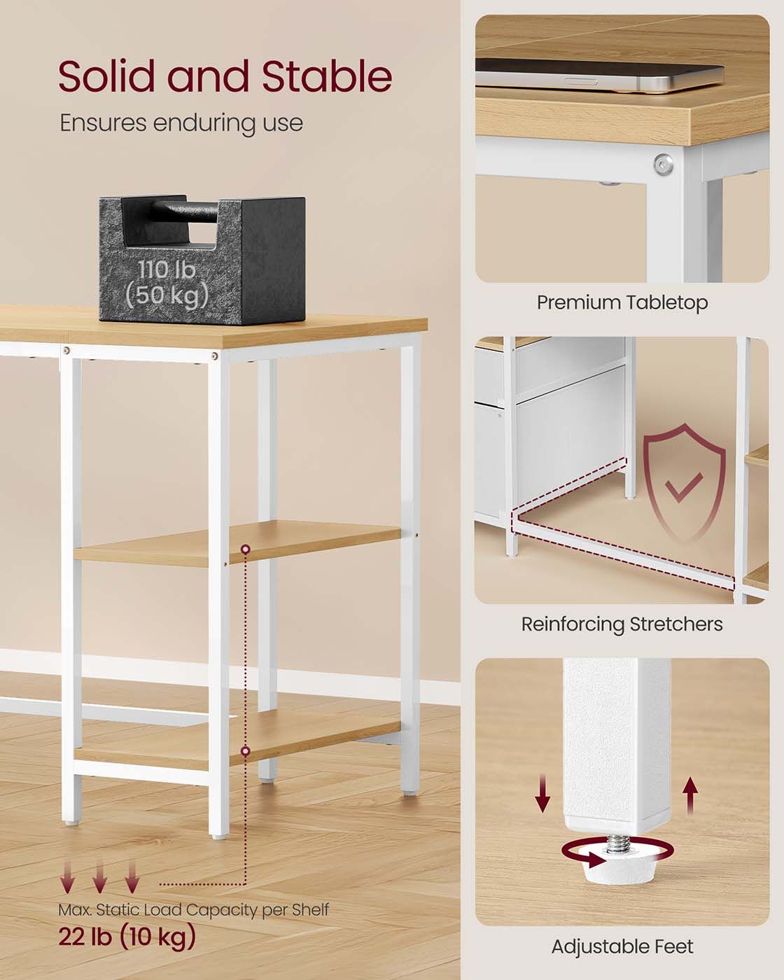 Computer Desk - ORADA Desk With Shelves and Drawers - White Natural Oak
