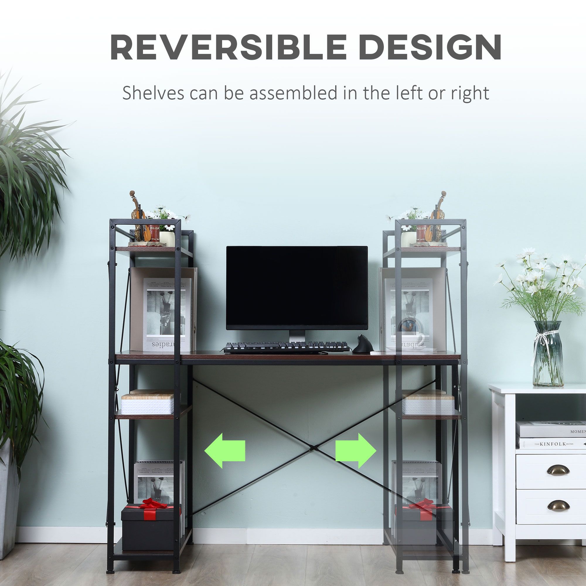 Computer Desk PC Table Study Workstation Home Office with 4-tier Bookshelf Storage Metal Frame Wooden Top (Walnut & Black)