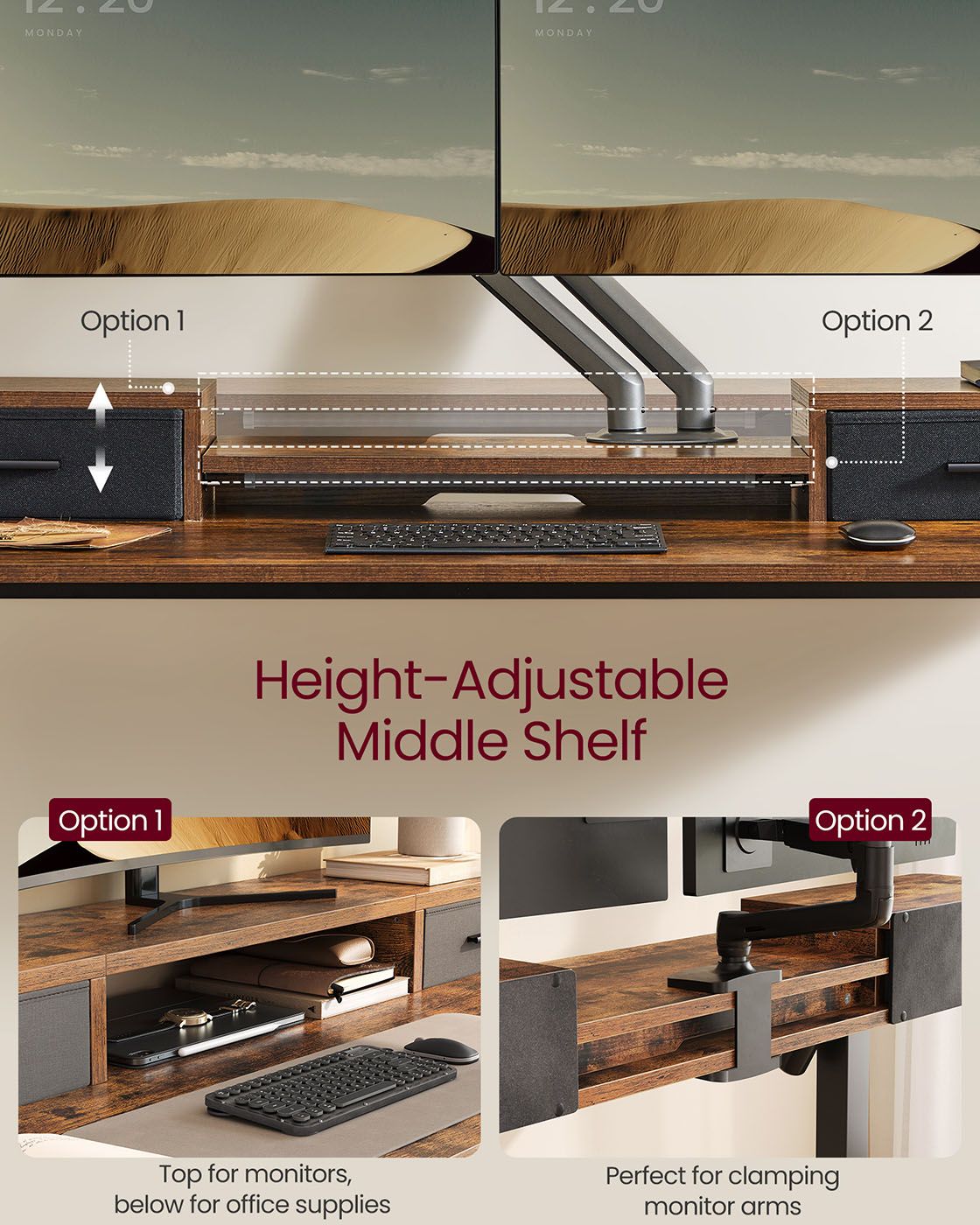 Computer Table - ASTNOS Electric Standing Computer Table - 140 cm Wide Rustic Brown